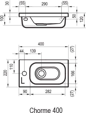 mõõdud (l x s): 40 x 22 cm materjal: komposiit - valatud segu dolomiidist ja vaigust tüüpiline teostus: parem ülevool: ei segisti auk: 35 mm