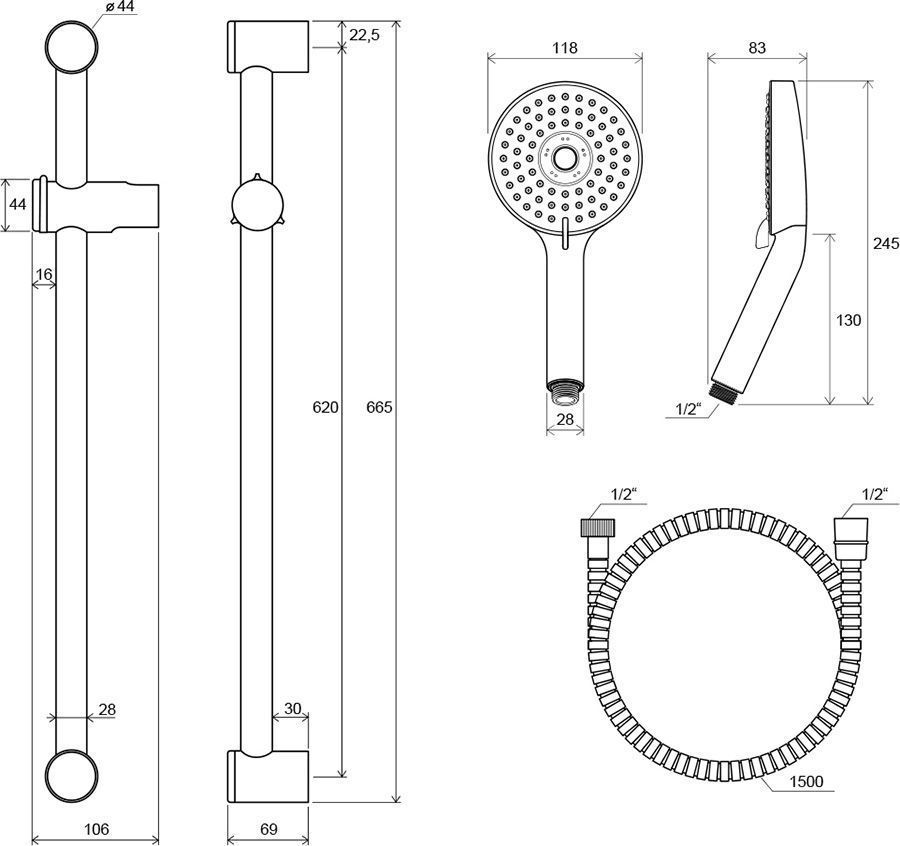 DUŠIKOMPLEKT RAVAK KÄSIDUŠŠ FLAT M, DUŠILIFT 66,5CM, VOOLIK