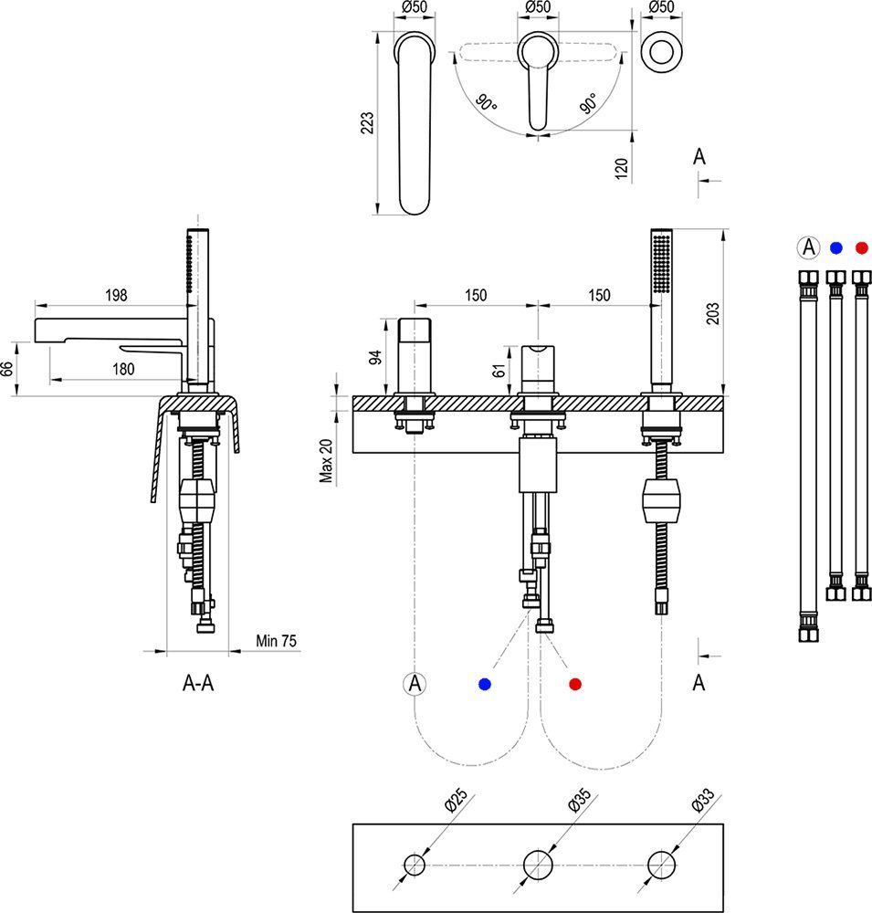 Segisti Puri kolme augu jaoks sobib paigaldamiseks vanni servale või kraanikausi taha. Toode koosneb kolmest komponendist, mis on omavahel disaini poolest kooskõlas. Segisti tagab ideaalse veetemperatuuri reguleerimise ja kindla ning mugava vahetamise vanni täitmise ja duši vahel. Vee temperatuuri ja kasutusviisi (vann/dušš) saab juhtida lihtsalt hooba keerates. Viimases augus on peidetud moekas väljatõmmatav käsiduši otsik.