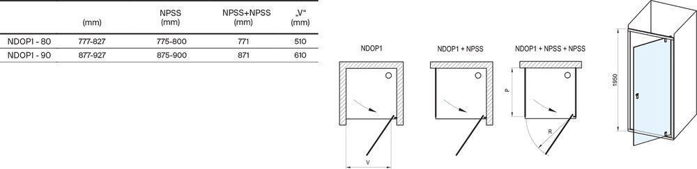 Kombinatsioon kahe fikseeritud seinaga NPSS tüüpi võimaldab luua "П" kujulise dušikabiini. Reguleeritav profiil NNPS võimaldab toote laiendamist 20 mm võrra, mis annab võimaluse dušiustele ideaalselt kohanduda ehituslike ebatasasustega kuni 4 cm mõlemal küljel. " kujulise dušikabiini. Reguleeritav profiil NNPS võimaldab toote laiendamist 20 mm võrra, mis annab võimaluse dušiustele ideaalselt kohanduda ehituslike ebatasasustega kuni 4 cm mõlemal küljel.