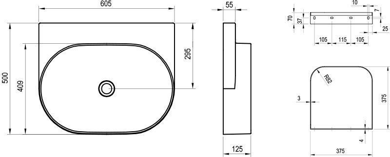 Mõõdud (laius x sügavus x kõrgus): 60,5 x 50 x 12,5 cm