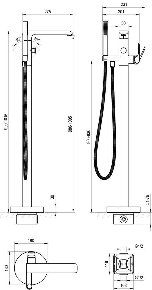 Õhuke ja elegantne segisti siluett loob vannitoas ilu ja funktsionaalsuse harmoonia. Põrandale paigaldatava segisti võimalus annab teile täieliku vabaduse luua vannituppa ainulaadseid lahendusi.