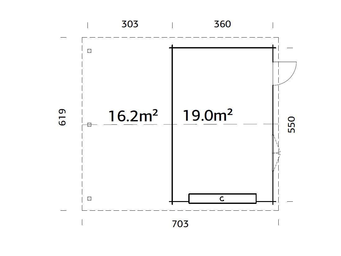 • Pindala: 19,0 m²
