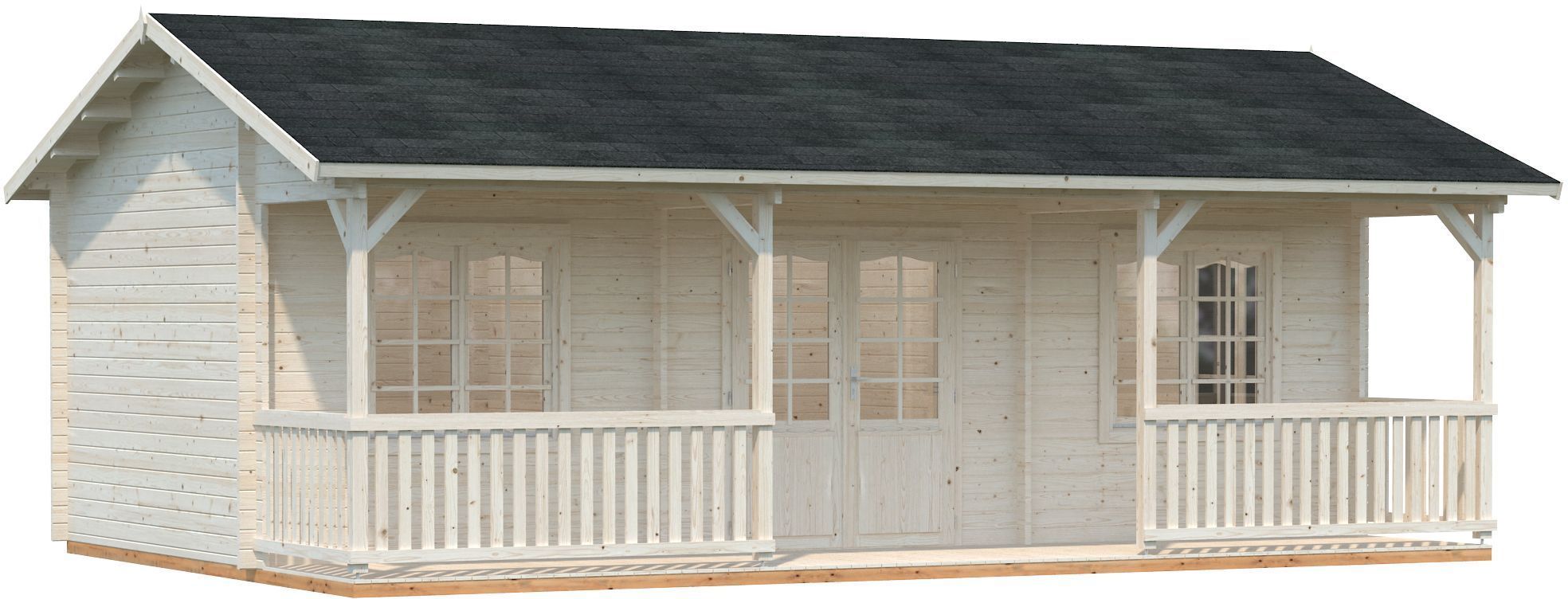 Palmako Sandra 25,6+11,1 m² on kvaliteetsest 44 mm freesprussist valmistatud aiamaja, mis sobib suurepäraselt suvekoduks, külalistemajaks või hobiruumiks. Maja avar planeering ja suurte akende kaudu sisenev loomulik valgus loovad hubase ja valgusküllase interjööri.