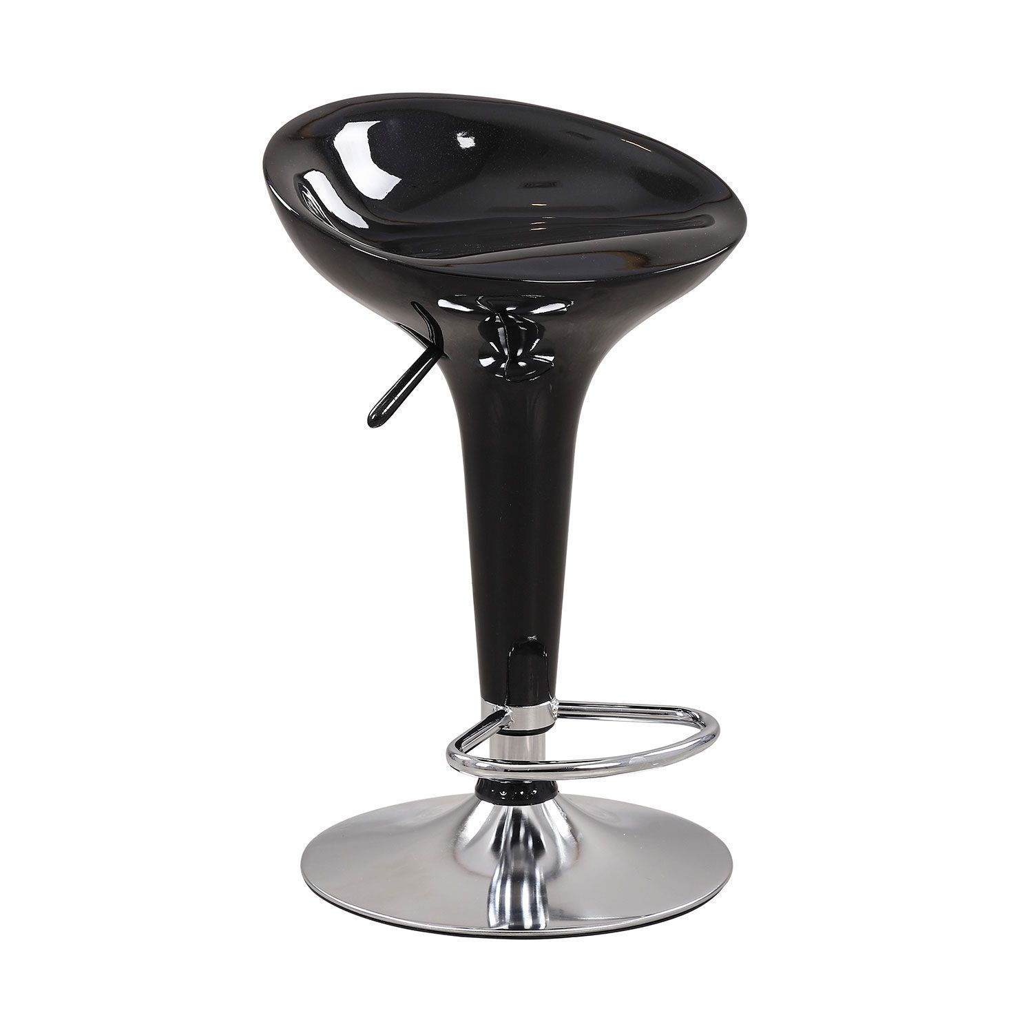 Baaripukk AMIGO must. Läikivast ABS plastikust tulbikujulise istmega baaripukk on ajatu disainiklassika. ABS plastik (akrüülnitriilbutadieenstüreen) on vastupidav ja suurepärase pinnakvaliteediga materjal. Baaripuki metallist jalg on kroomitud. Istmekõrgus on reguleeritav gaasamordi abil. Iste pöörleb 360°. Baaripuki üldmõõdud on 44x38xH67-87cm. Istme kõrgus 60-80cm. Kaalupiirang 100kg.