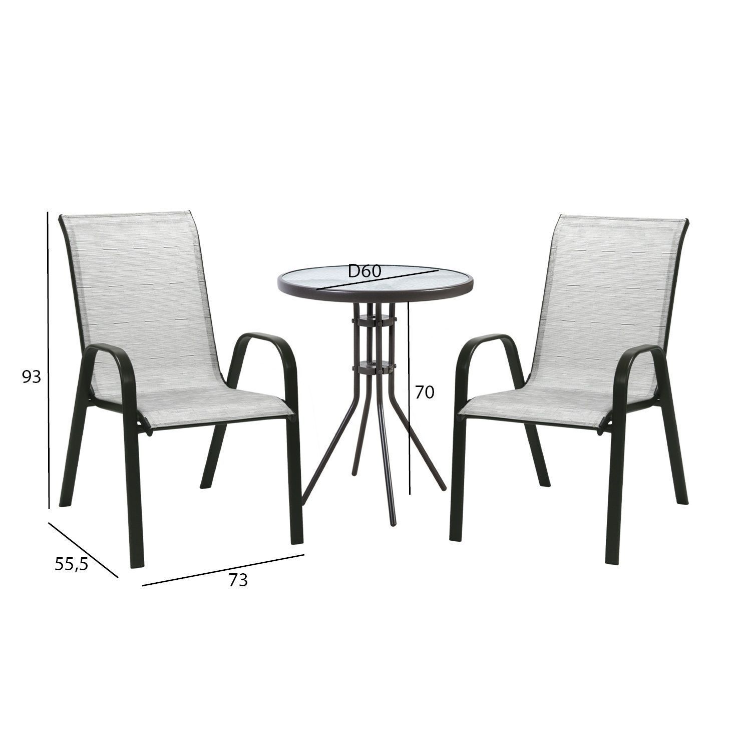Aiamööblikomplekt DUBLIN laud ja 2 tooli, hõbehall.