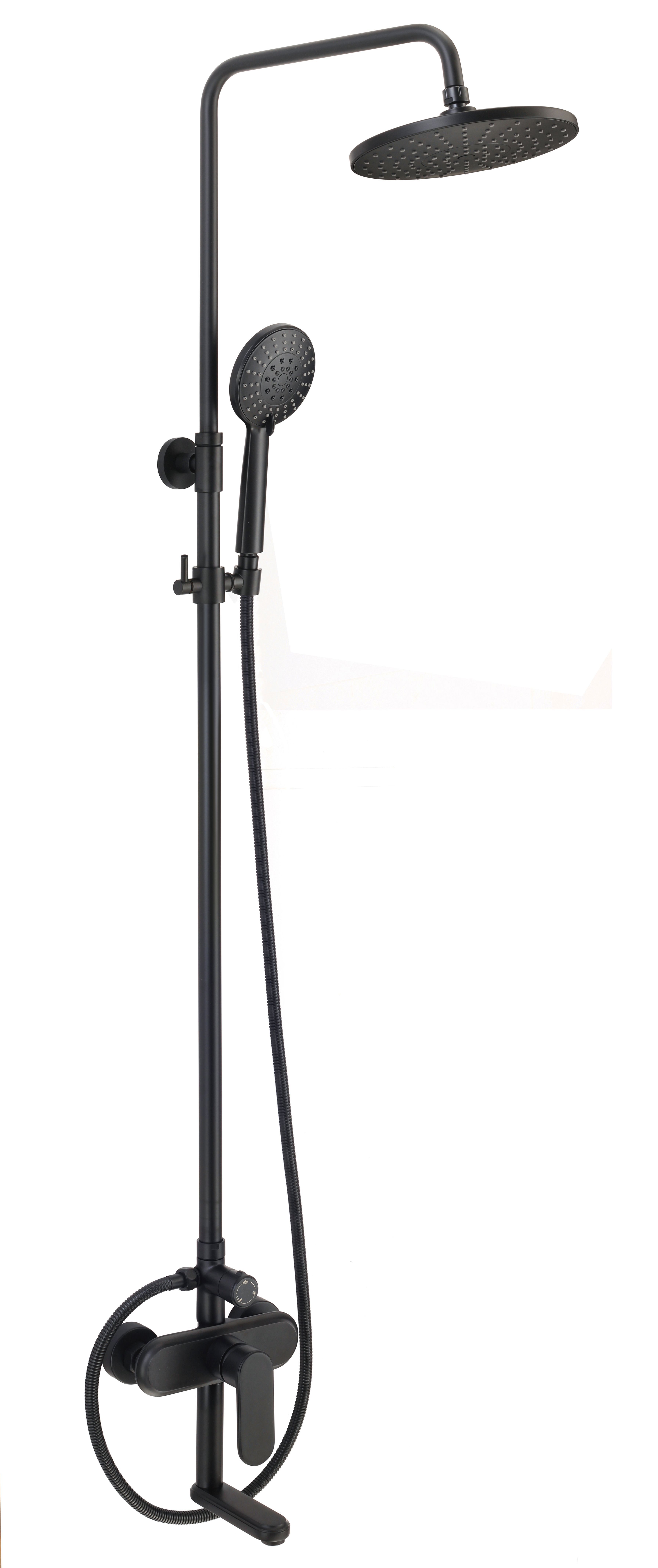 • Musta värvi viimistlusega dušisegisti komplekt.