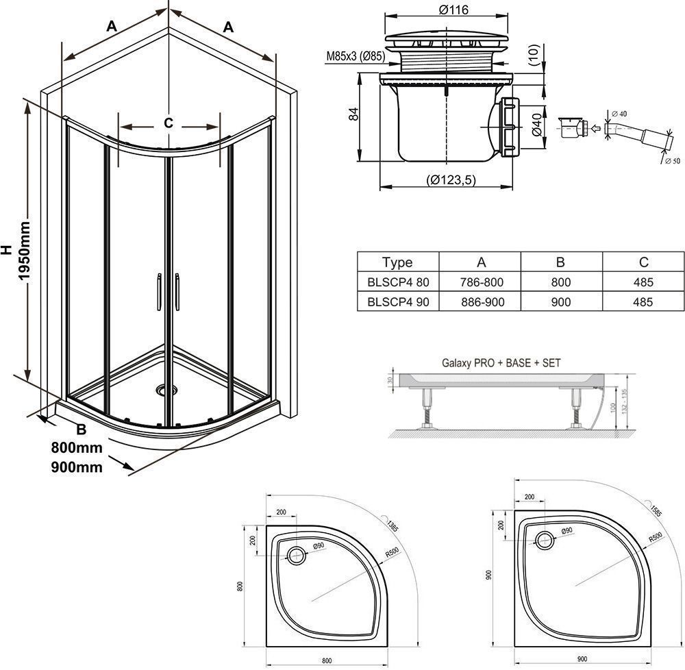 • Dušikomplekt sisaldab Blix Slim poolringikujulist dušinurka koos dušialuse, tugikonstruktsiooni, esipaneeli ja sifooniga.