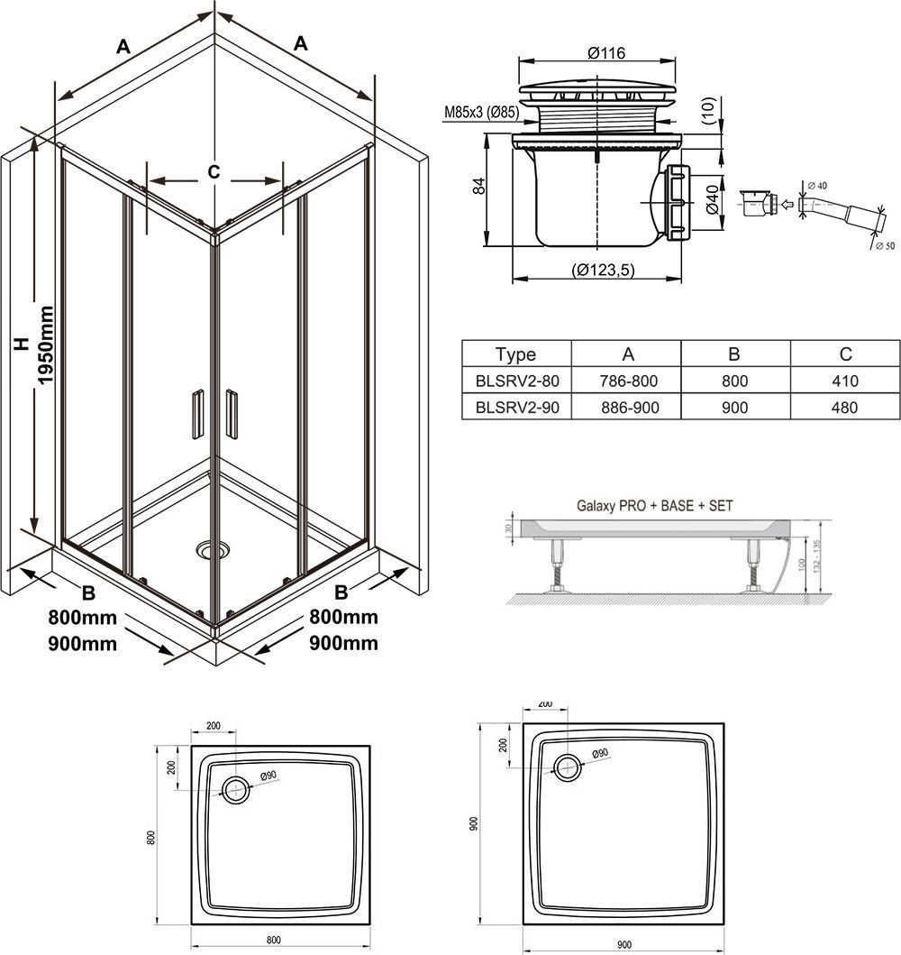 Ravak dušikomplekt sisaldab Blix Slim nurgadušinurka koos dušialuse, tugikonstruktsiooni, esipaneeli ja sifooniga.