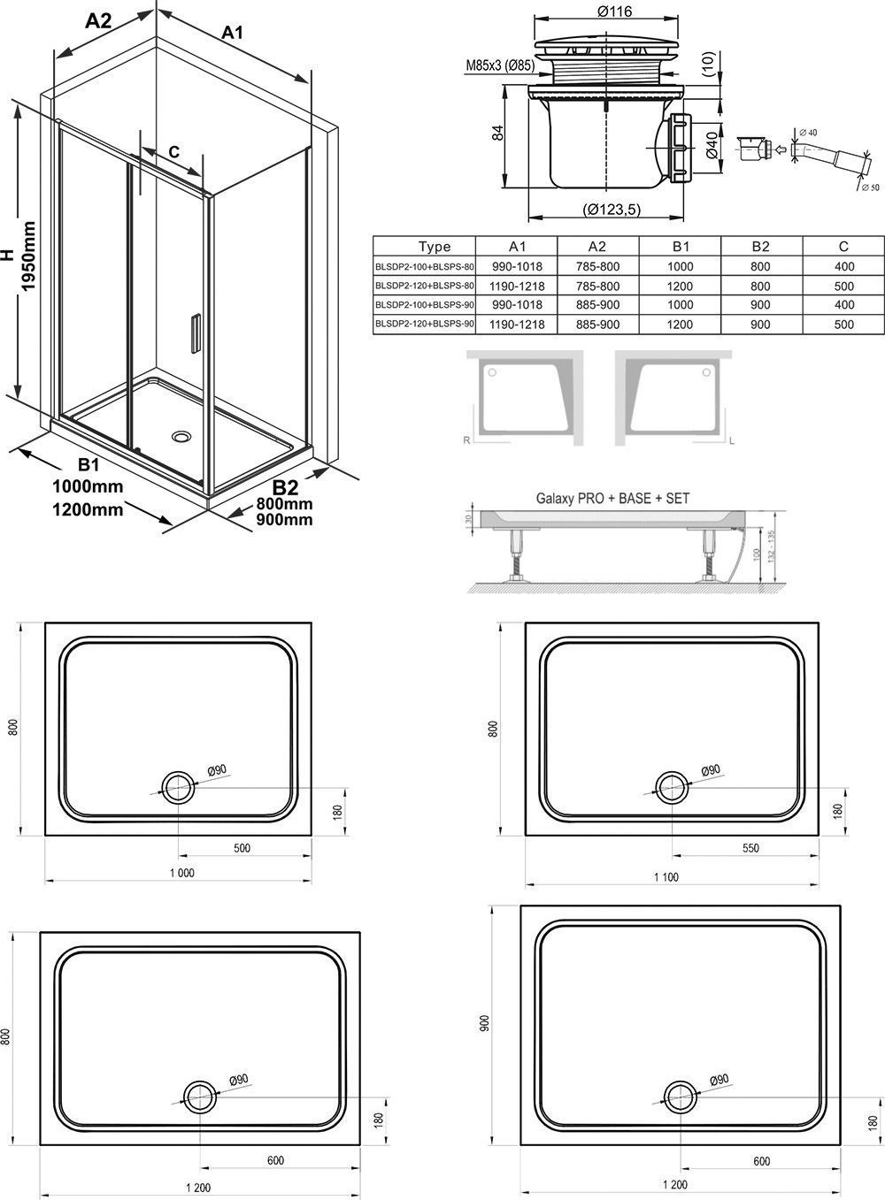 DUŠIKOMPLEKT RAVAK 120X90 5IN1 BLSDP2 + BLSPS, SET15L MUST