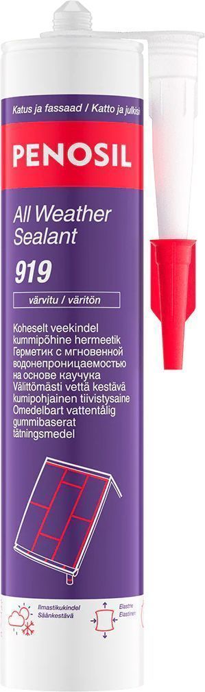 Penosil 919 silikoonivaba koheselt veekindel kautšukipõhine hermeetik, mida saab kasutada kiireteks fassaadi ja katuse remonditöödeks isegi vihma ajal. Nakkub hästi enamiku tavaliste katusekattematerjalidega, saab kanda ka niisketele, kergelt õlistele ja bituumenpindadele.