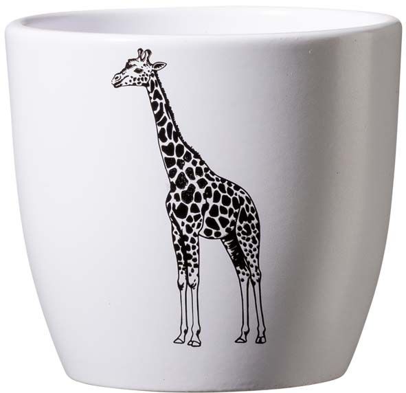 Ümbrispott Safari on läbimõõduga 10 cm. Pikkus on 8 cm, värv: valge, kaelkirjak.