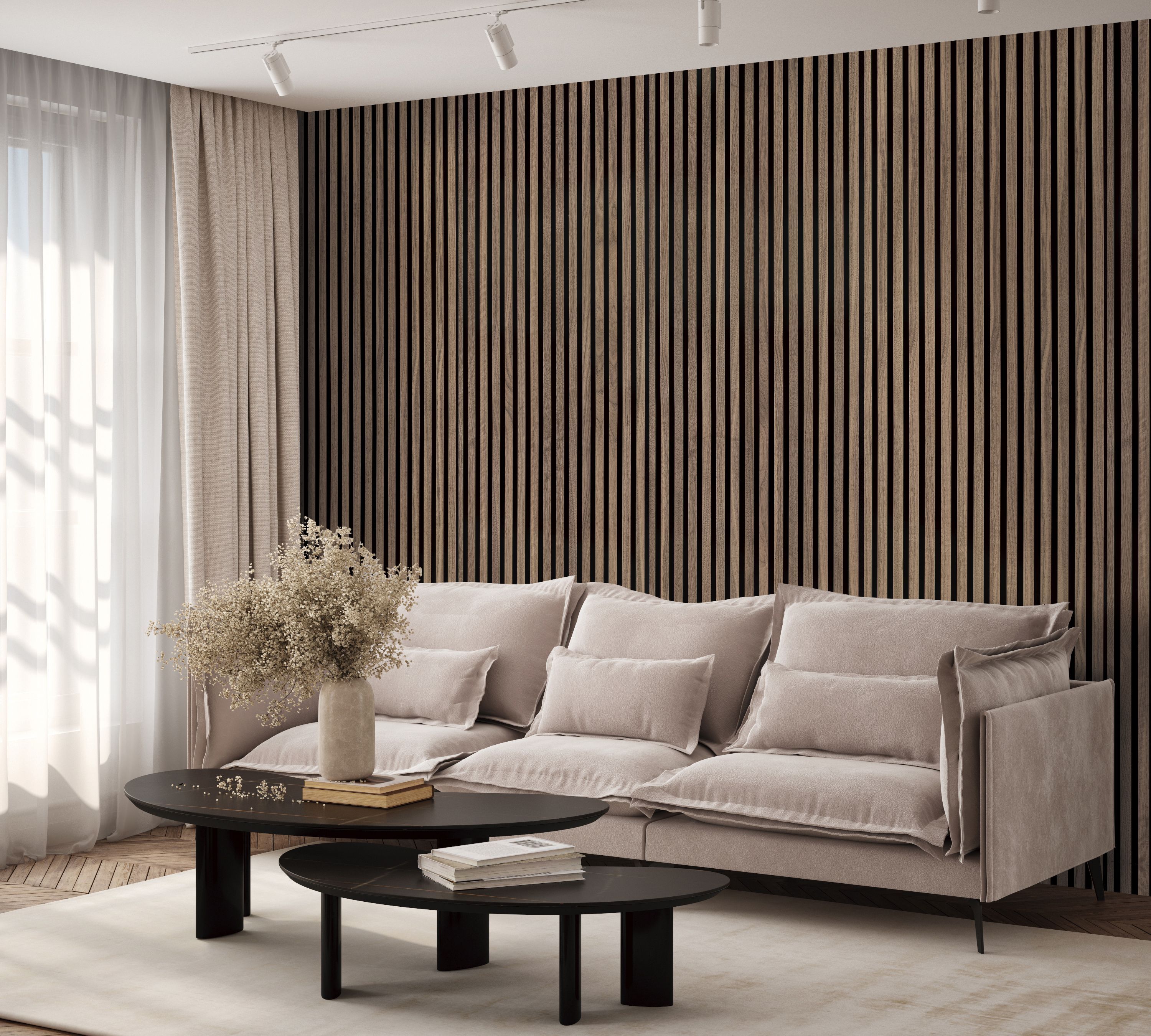 Kvaliteetne akustiline seinapaneel, mis pakub elegantset lahendust ruumi helikvaliteedi parandamiseks ja visuaalse mulje täiendamiseks. Paneel koosneb vastupidavatest 13 mm MDF-liistudest, mis on viimistletud 1 mm naturaalse ja oksavaba puiduspooniga. Taustaks on 9 mm paksune viltplaat, valmistatud taaskasutatud polüesterkiust – suurepärase helisummutusega ja keskkonnasäästlik.