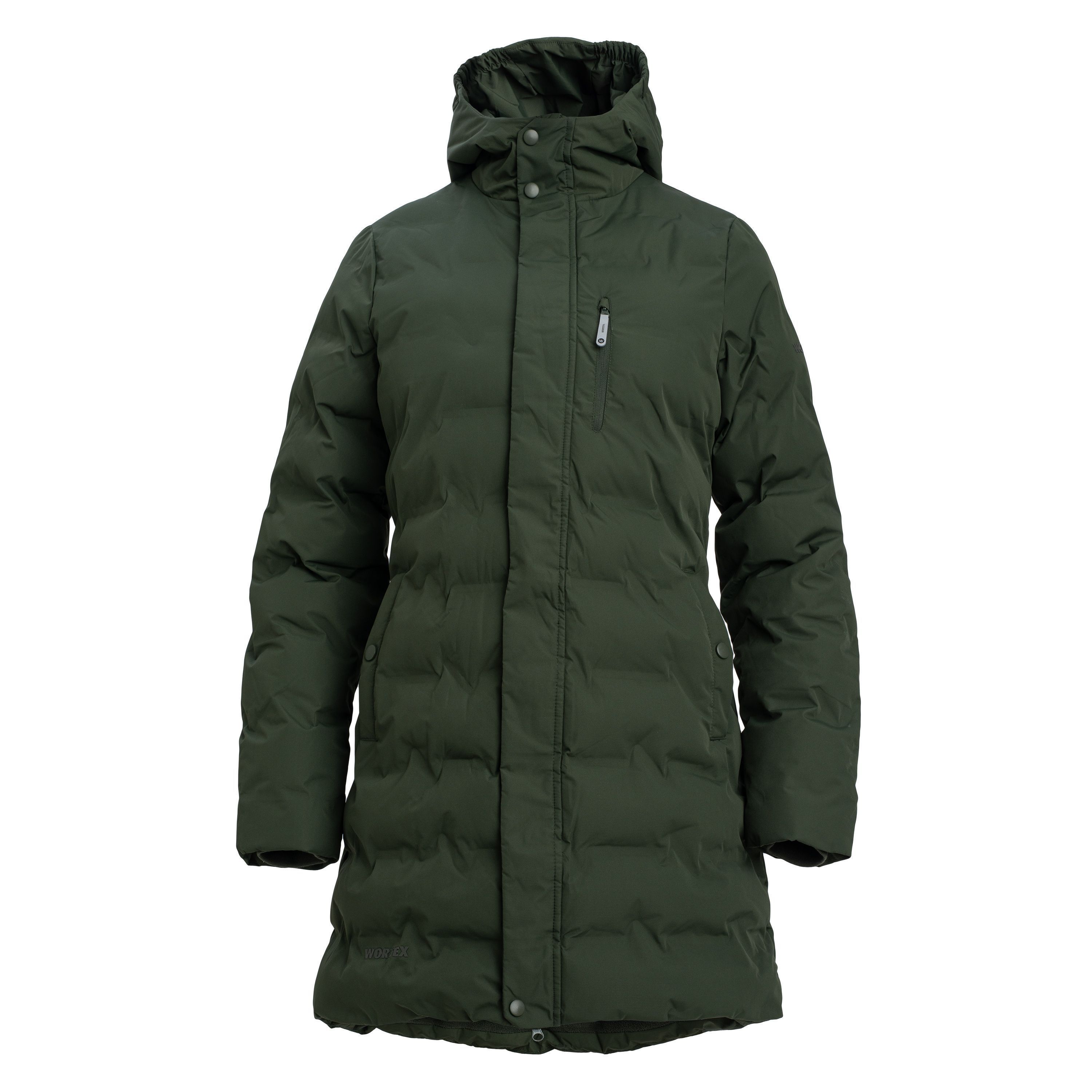 WORTEX W961 naiste talveparka on usaldusväärne kaaslane ka kõige külmemate ilmadega. Talveparka pealiskihiks on kvaliteetne ULTRA-SONIC töötlusega pongee materjal, mis on kaetud TPU membraaniga, et suurendada jope kulumis-, vee- ja tuulekindlust. Käreda pakase eest kaitseb soojahoidev polüestervooder ning pehmest fliisist sisemine kiht. Suur kapuuts, kõrge kaelus ja soonikkoes varrukad pakuvad lisakaitse külma eest. Parkal on ees pikk lukk, mida katab tormiklapp. Väline lukuga rinnatasku ja kaks mahukat küljetaskut. Minimalistliku stiiliga talvejopel on rohkelt ruumi, et lisada ettevõtte logo või sümboolikat.