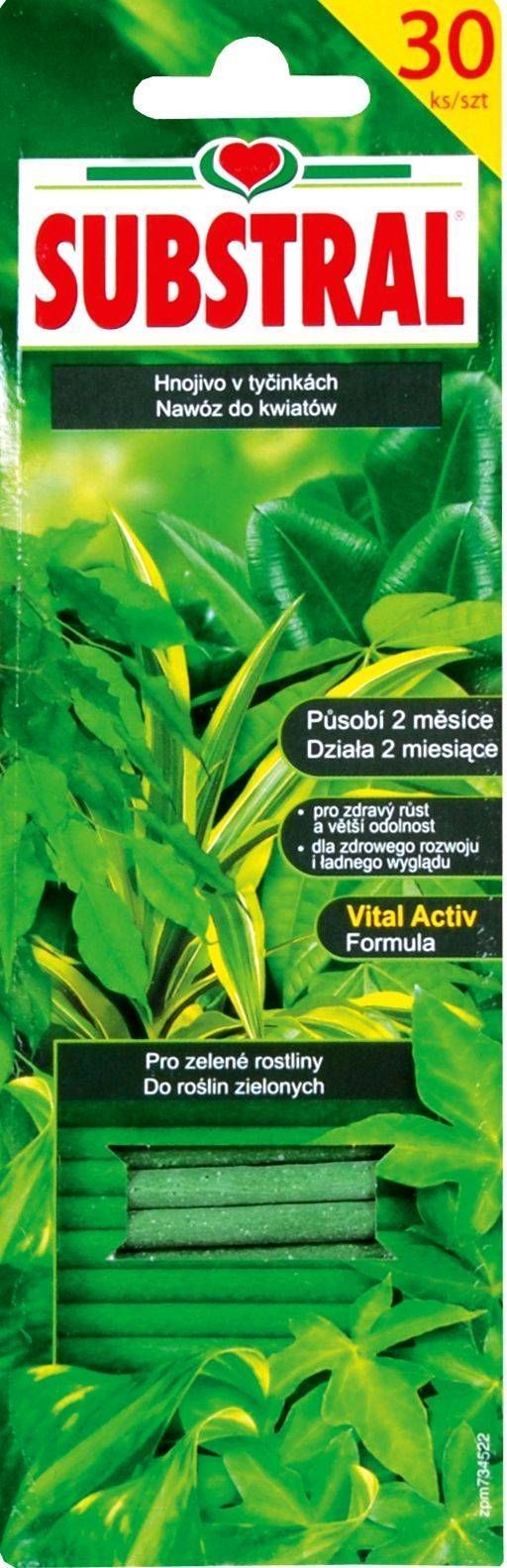 Substral® Lehtdekoratiivsete taimede mineraal väetisepulgad toa- ja rõdutaimedele. Vital-Aktiv tagab parima võimaliku kasvu ja arengu väetades ühtlaselt kahe kuu jooksul. Raud-Plus on kergesti omastatav raualisand, mis ennetab rauapuudust ja väldib lehtede kloroosi (kolletumist), hoides taimed värvikirkana.
