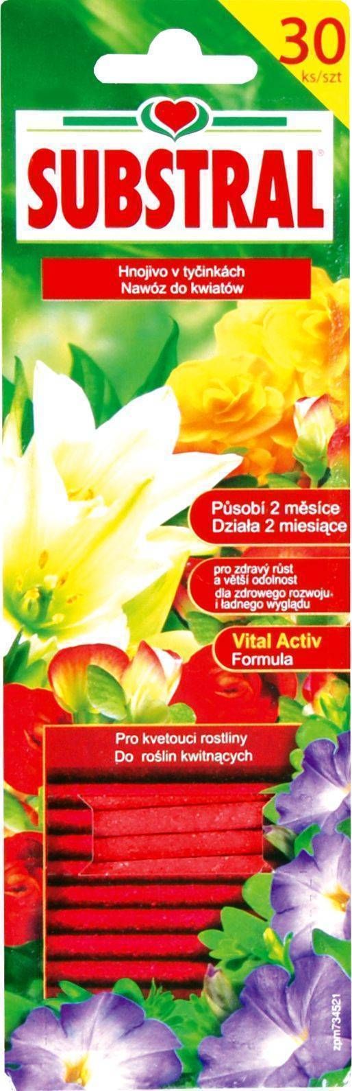Substral® Õitsvate toa- ja rõdutaimede väetisepulgad, mis sisaldavad kõiki taimedele väärtuslikke põhitoitaineid ja mikroelemente. Vital-Activ ja Raud-Plus tagavad taimedele parima kasvu, arengu ja rikkaliku õitsemise ennetades rauapuudust ja lehtede kloroosi (kolletumist). Väetab ühtlaselt kahe kuu jooksul.
