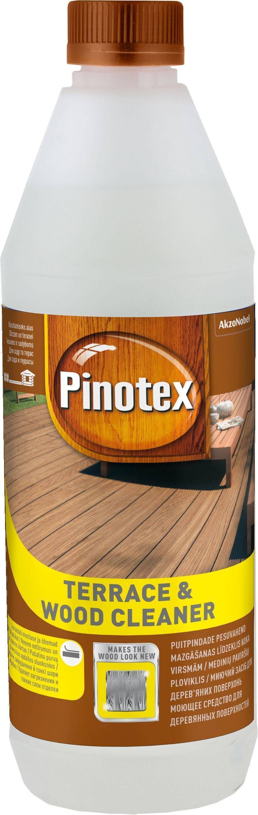 Pinotex Terrace Cleaner on pesuvahend vanemate või määrdunud puitpindade puhastamiseks ning värskendamiseks. Kõrvaldab pinnalt õhema õli- või puidukaitsevahendi kihi. Varem puidukaitsevahendiga töödeldud süvaimmutatud või immutamata välispuitpinnad, nt terrassid, trepid, fassaadid. Ei sobi vääris- ja termopuidu puhastamiseks.