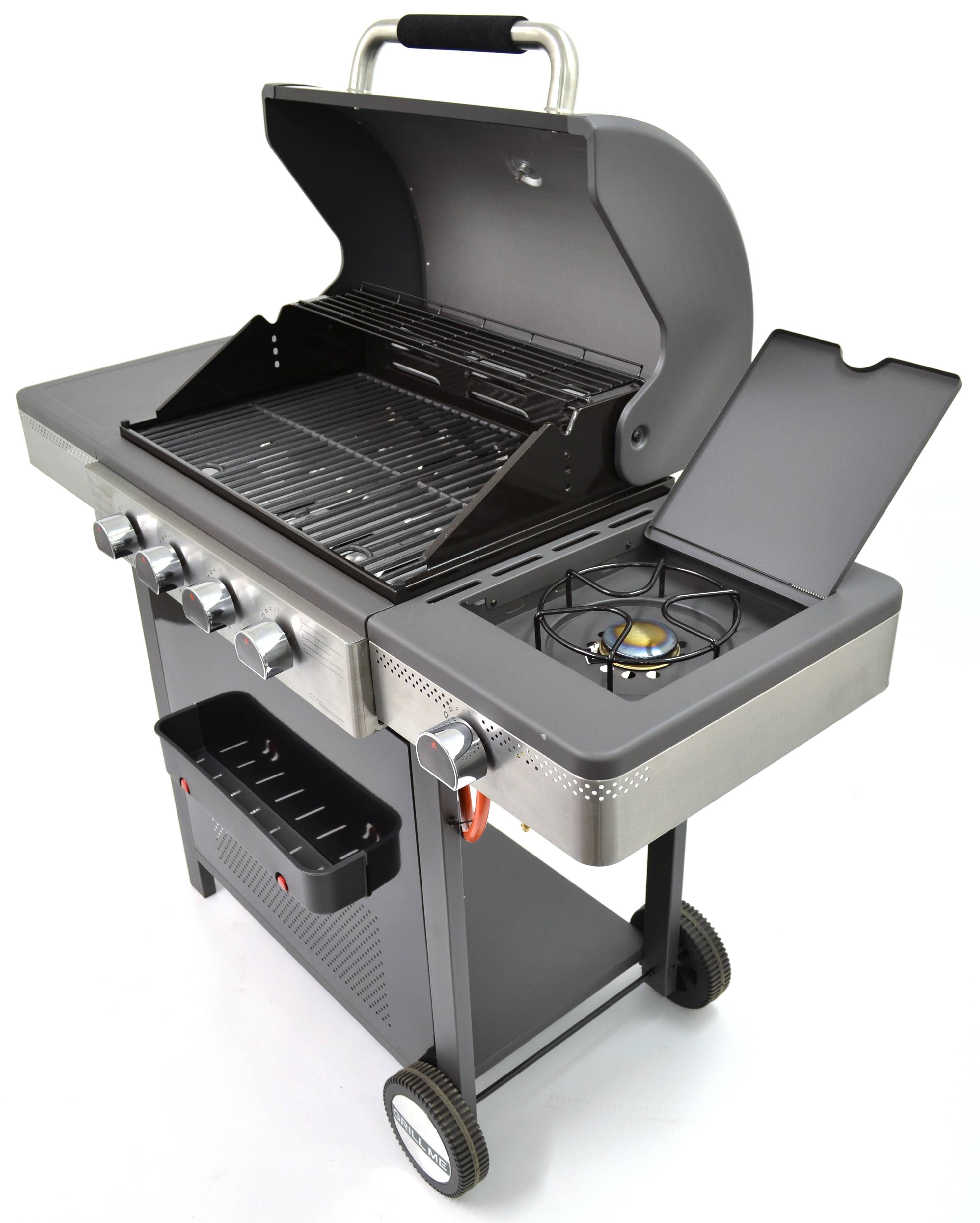• Nelja põletiga + külgpõletiga gaasigrill on võimsusega 14,15 W. • Grillimisala suurus on 66,5 x 41,5 cm. • Grillrest ja grillimisplaat on valurauast. • 14-päevane tagastusõigus.