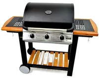• Kolme valurauast põletiga gaasigrill, võimsus 10,5 kW • Piezo süüde, termomeeter, rasvakogumisvann • Kasutatud punakat puitu, värvitud terasest korpus ja raam