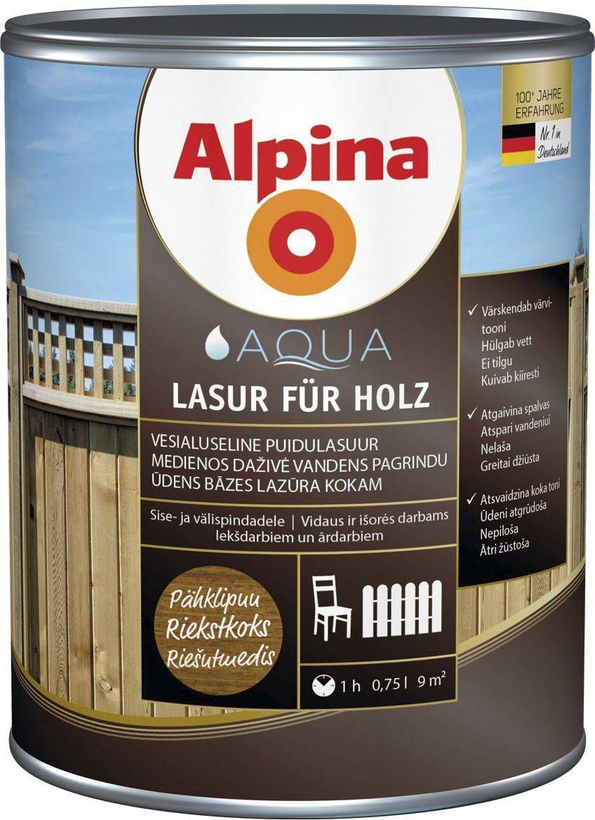 PUIDUKAITSEVAHEND ALPINA AQUA LASUR FÜR HOLZ 0,75L PÄHKLIPUU