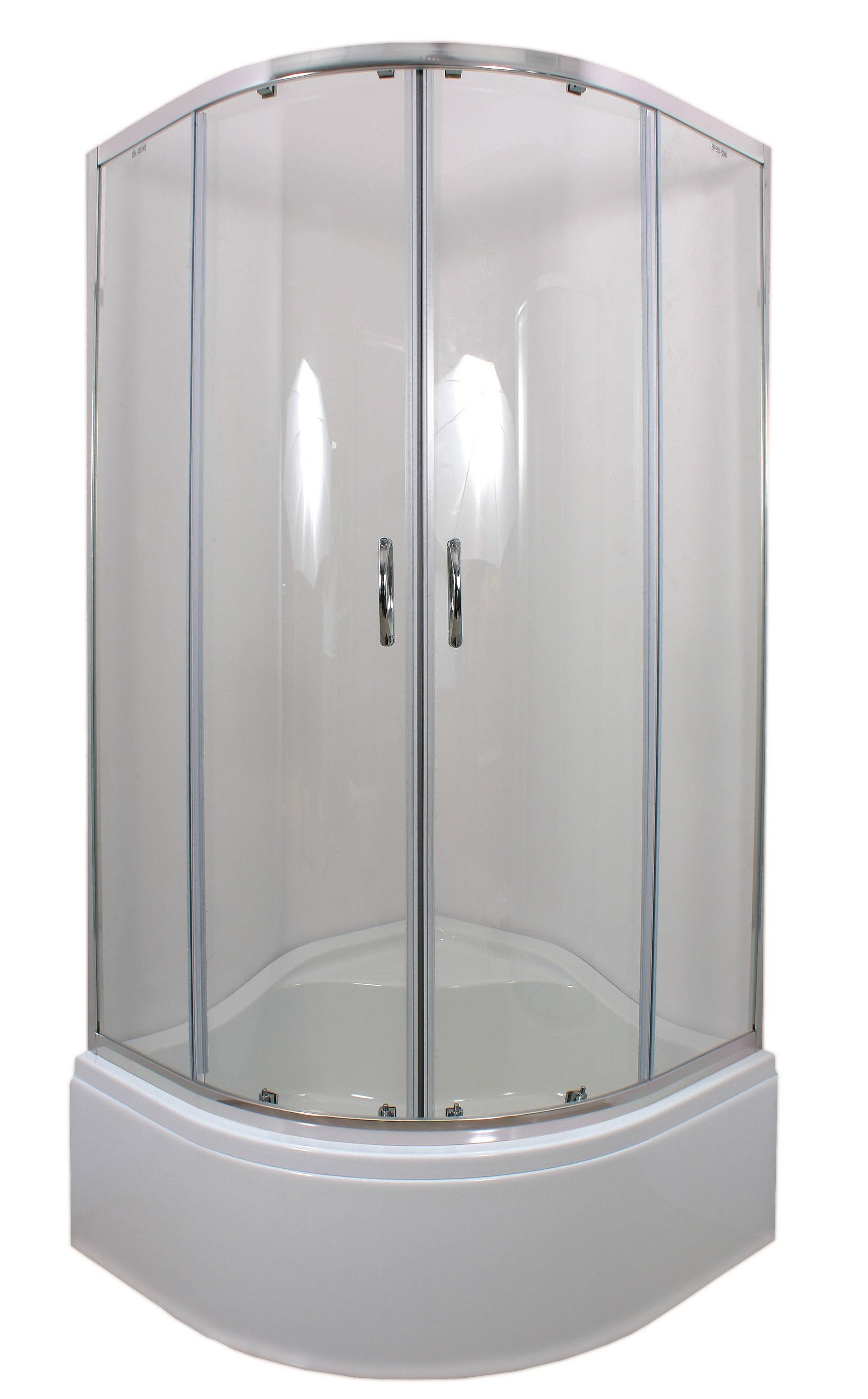Durasan PARMA CLEAR on alumiiniumraamiga kaarekujulised dušinurga klaasseinad, mille mõõtmed on 90 x 90 x 165 cm.