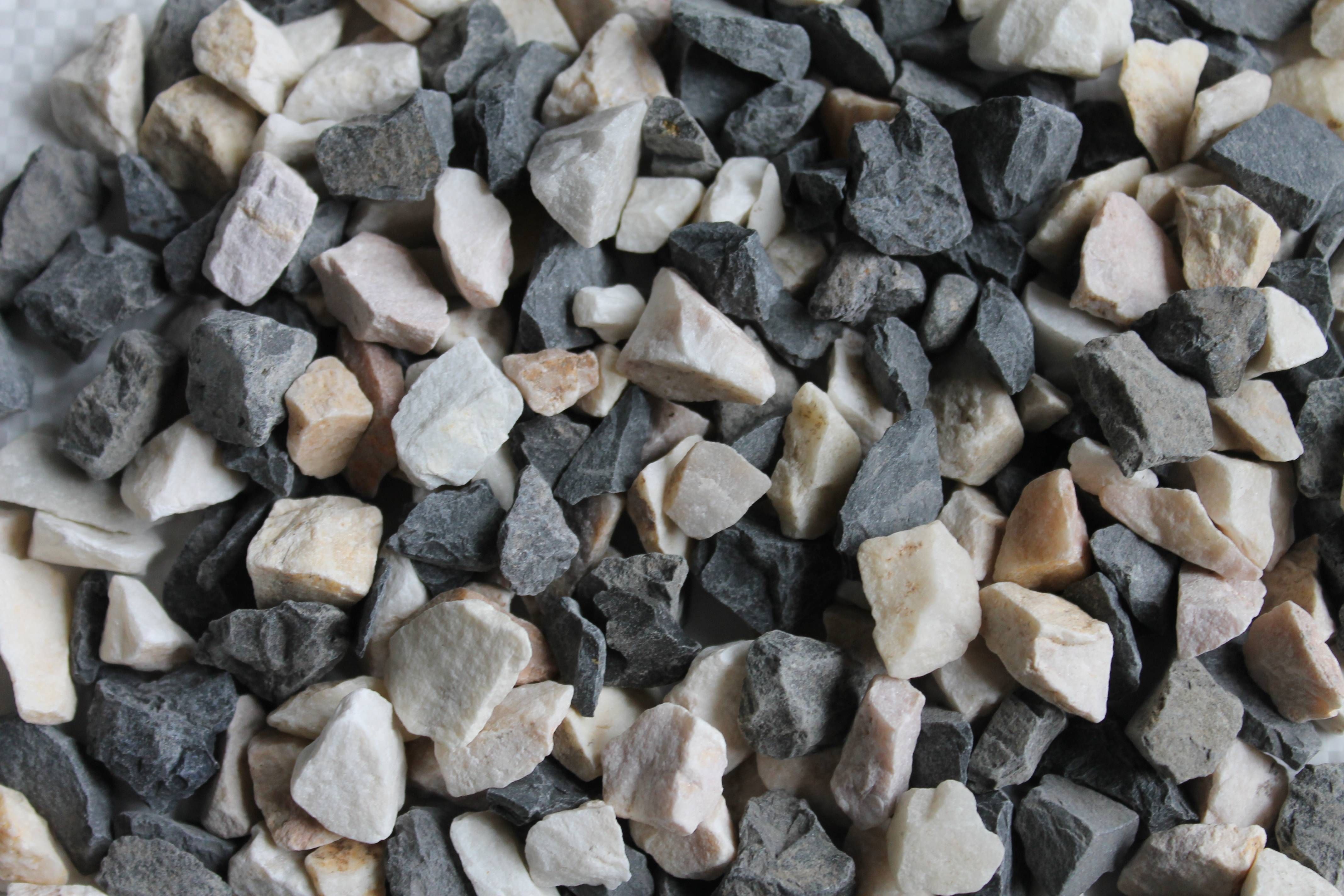 ZDK musta ja valgega dekoratiivne graniitkillustik, mille osakeste suurus on 8-16 mm.