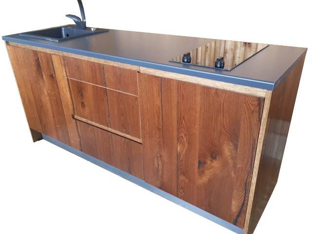 Skandinaavia miniköök, mis on valmistatud materjalist oak Vintage Hobiken ning kaetud lakiga. Kapisisuks tumehall antratsiit plaat.