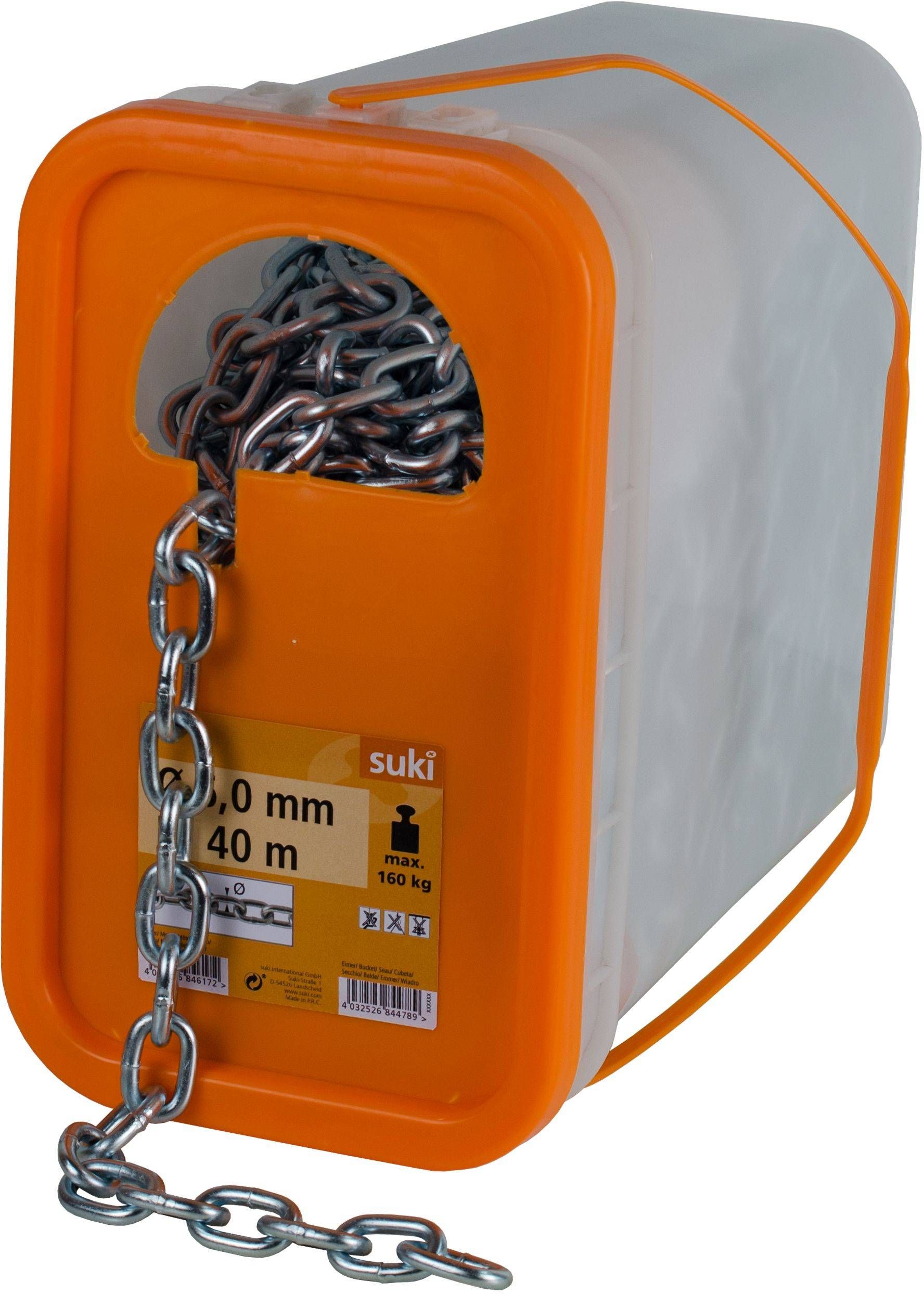 Suki keevitatud kett on lühikeste lülidega (6 mm). Keti põhimaterjal on teras, kaetud tsinkkattega. Ohutu töötamise koormus 160 kg, purunemise koormus 640 kg. Kett on A-tüüpi.