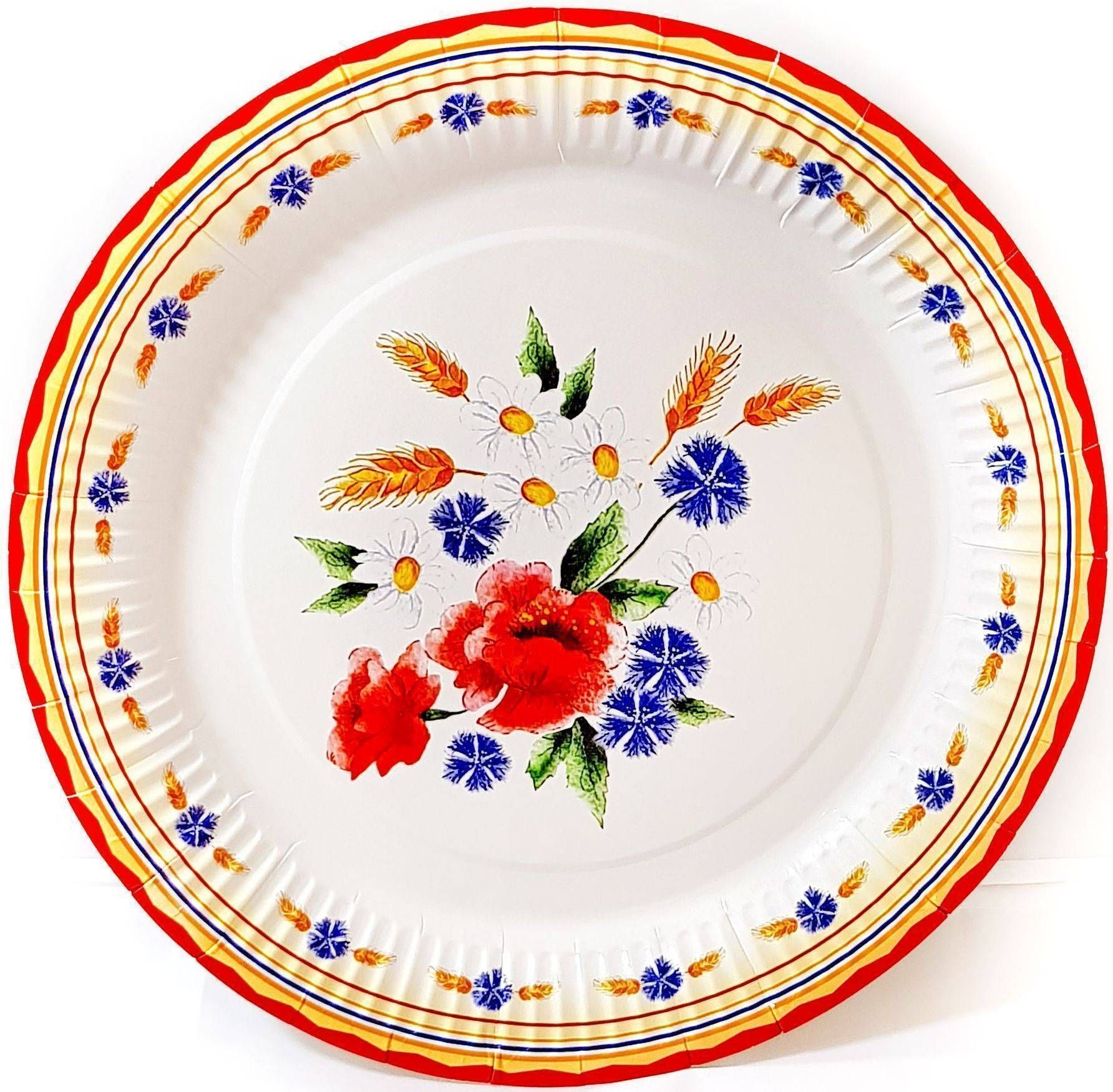 Papist lamineeritud mustriga taldrikud. Papptaldriku läbimõõt on 23 cm. Pakis on 10 tk.
