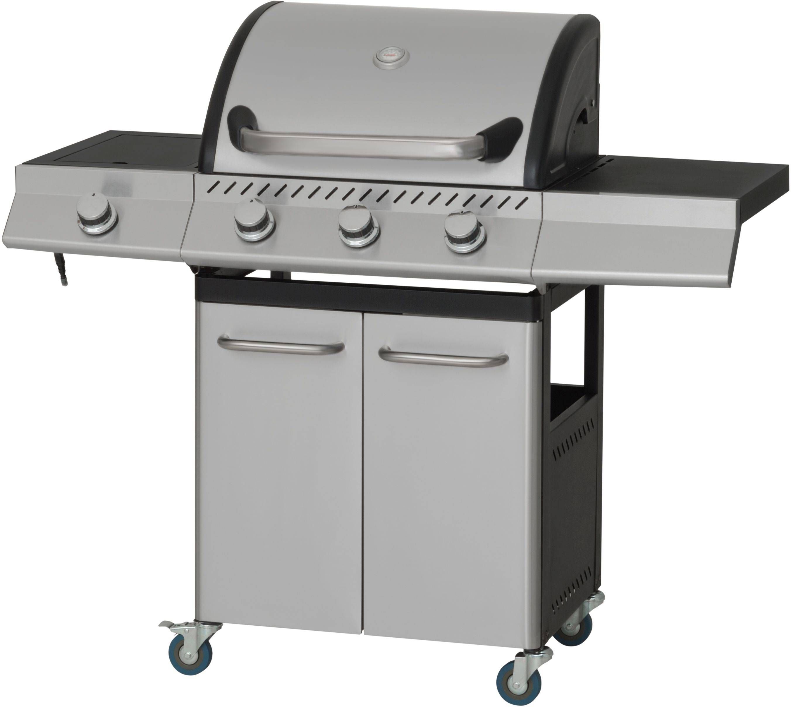 • Kolme roostevabast terasest põletiga (3 x 3,2 kW) ja külgpõletiga (3,2 kW) gaasigrill. • Küpsetusala on 58 x 41,5 cm ja küpsetuspinna kõrgus 85 cm. • Mõõtmed on 124 x 54 x 111 cm. • 14-päevane tagastusõigus.