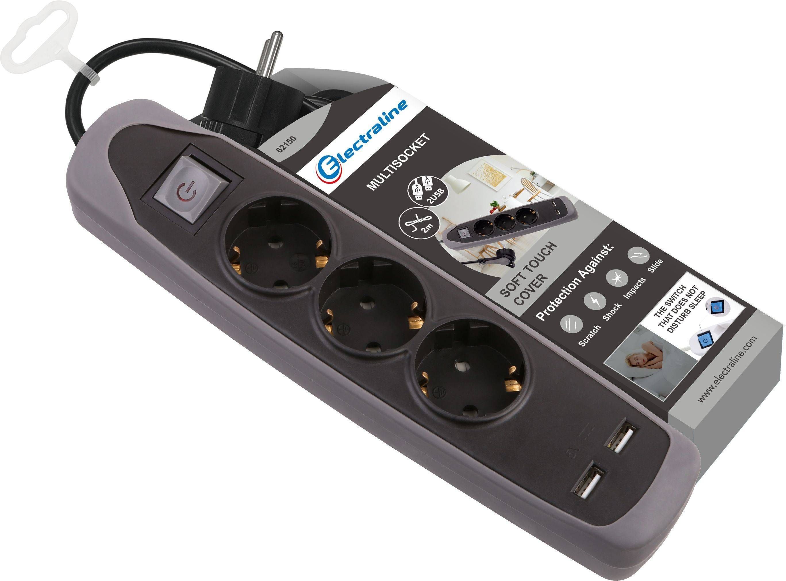 PIKENDUSJUHE ELECTRALINE 2M 3PESA 3G1,0MM² LK LÜLITI 2XUSB MUST/HALL