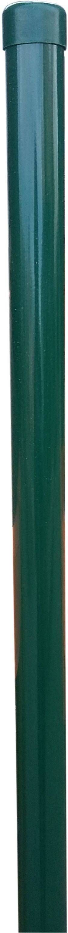 Ümar aiapost koos postimütsiga 1,25 mm. Posti mõõtmed on 3,8 x 3,8 x 200 cm. Ümarpost on tsingitud ja kaetud värviga RAL 6005.