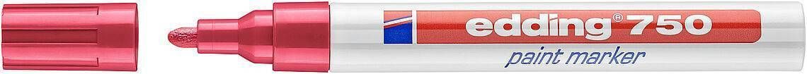 Edding 750 punase markeriga saab kirjutada enamustele siledatele ja ka poorsetele pindadele näiteks: klaas, plastik, puit ja metall. Toimib hästi ka tumedatel ja läbipaistvatel pindadel. Veekindel, kiiresti kuivav. Talub kuni 400 kraadist kuumust. Pumpsüsteem, raputada enne kasutamist, eemaldada kork ja pumbata. Alumiiniumkestaga ja ümara otsaga. Joone laius on 2-4 mm.