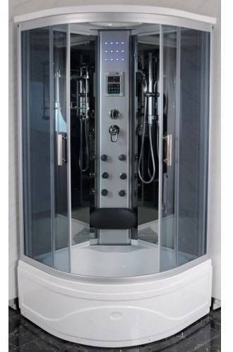 • Aurusauna mõõtmed on 100 x 100 x 43 cm ja alusvanni kõrgus 215 cm. • Toonitud 5 mm turvaklaasid. • Kroomitud tugevdatud alumiiniumraam. • Komplektis on segisti, duššilift, käsidušš, laedušš, seljamassaž, ventilaator, juhtimisekraan, raadio, valgus, klaasriiul, iste ja aurugeneraator. • 14-päevane tagastusõigus.
