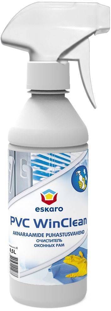 Eskaro Winclean efektiivne veepõhine vahend PVC-pindade (valged aknaraamid, uksed, vooderdised, torud, veerennid jne) puhastamiseks ja hooldamiseks. Mugavas spary pudelis. Eemaldab mustuse ja plekid, taastab tuhmunud pindadele esialgse valge tooni. Välis- ja sisetöödeks. Pudelis 0,5 liitrit.
