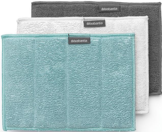 Brabantia nõude mikrofiiberlapid mõõtmetega 15 x 22 cm. Kiudude ja triipudeta puhastamine vaid veega - võimalus kasutada vähem pesuvahendeid. Imab vedelikku 7 korda oma kaalust. Masinpestav 60°C juures. Pakis 3 tk.