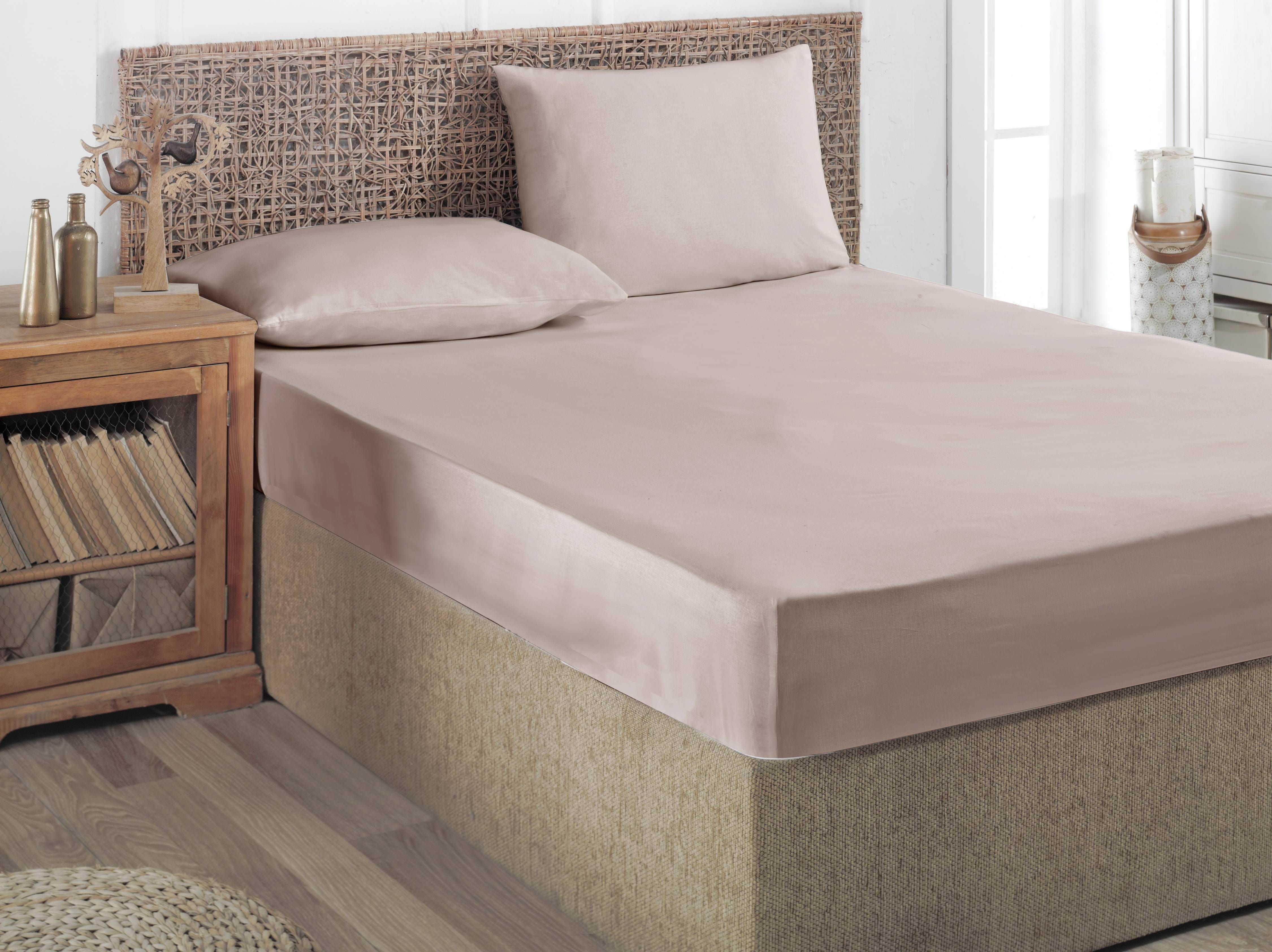 Puuvillasatiinist voodilina on mõõtmetega 180 x 200 cm ja värvus powder.