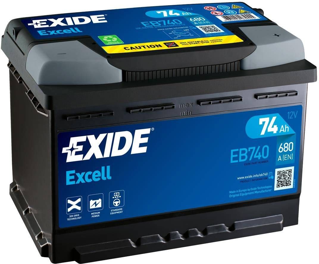 Exide käivitusaku Excell kaasaegsele autole. Mahutuvus: 74 Ah. Käivitusvool: 680 A. Tavaakust kuni +15% kõrgem käivitusvool. Hooldevaba, eriti väike veekulu ja isetühjenemine. Tsentraalne gaaside eraldussüsteem, mis vähendab aku plahvatusohtu. Talub hästi korduvaid külmkäivitamisi ning elektritarbijatega koormamist. Sobib nii bensiinimootoriga kui ka diiselmootoriga autodele. Mõõtmed on 27,8 x 17,5 x 19 cm.