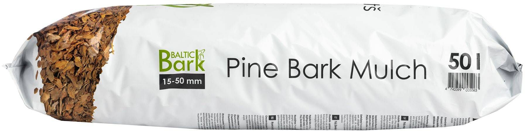 Baltic Bark peen männikooremultš 15 - 50 mm. Toode on valmistatud komposteeritud ja sorteeritud männikoorest (Pinus sylvestris). Kasutamine: tootekulu 1 kott = 0,7 - 1 m². Kasutada istutusalade katmiseks, hekialuste ja puude ümbruse multšimiseks. Ei ole soovitav kasutada väiksemate taimede (taimede kõrgus alla 30 cm) multšiseks. Multš panna niiskele umbrohtudest puhastatud mullale. Kui ala on kuiv, siis enne multši laotamist mõõdukalt kasta. Taime juurekaela ümbrus jätta 15 cm ulatuses multšmata. Taimekahjurite ja ‑ haiguste leviku ennetamiseks on soovitatav multši pealmist kihti igal kevadel 2 - 3 cm paksuselt uuendada. Männikooremultši võib kasutada ka jalgradade ja lastemänguväljakute katmiseks, lisaainena turbamulla segudes, aiamaal peenarde vahelistel jalgradadel ja koerte aedikutes. Tooraine töötlemisel ei ole kasutatud kemikaale. Tootes kasutatav tooraine on taastuv ressurss ning 100% keskkonnasõbralik. Pakendis 50 liitrit.