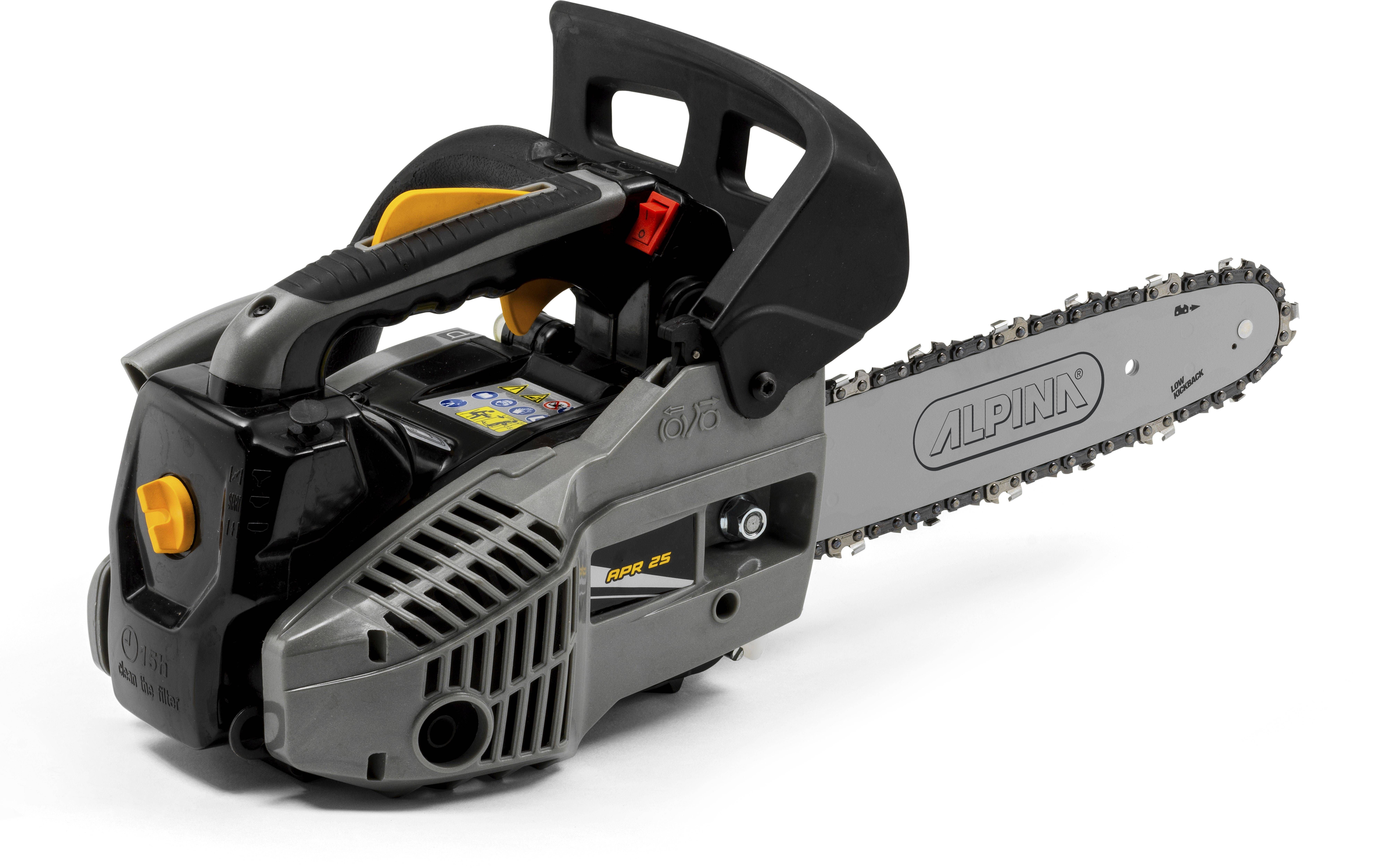 Alpina APR 25 kettsael on 25,4 cm³ (0,9 kW) bensiinimootor ja see on loodud koduseks kasutamiseks, pakkudes samas professionaalse tööriista ohutust, ergonoomikat ja töökindlust. Mootorsael on suurepärane võimsuse ja kaalu suhe, samal ajal kui vedrusüsteem vähendab vibratsiooni. Juhtplaadi mõõdud on 25 cm (10“). Tagumine pehmendatud haardekäepide tagab hoidmise ja turvalisuse saega töötamisel.