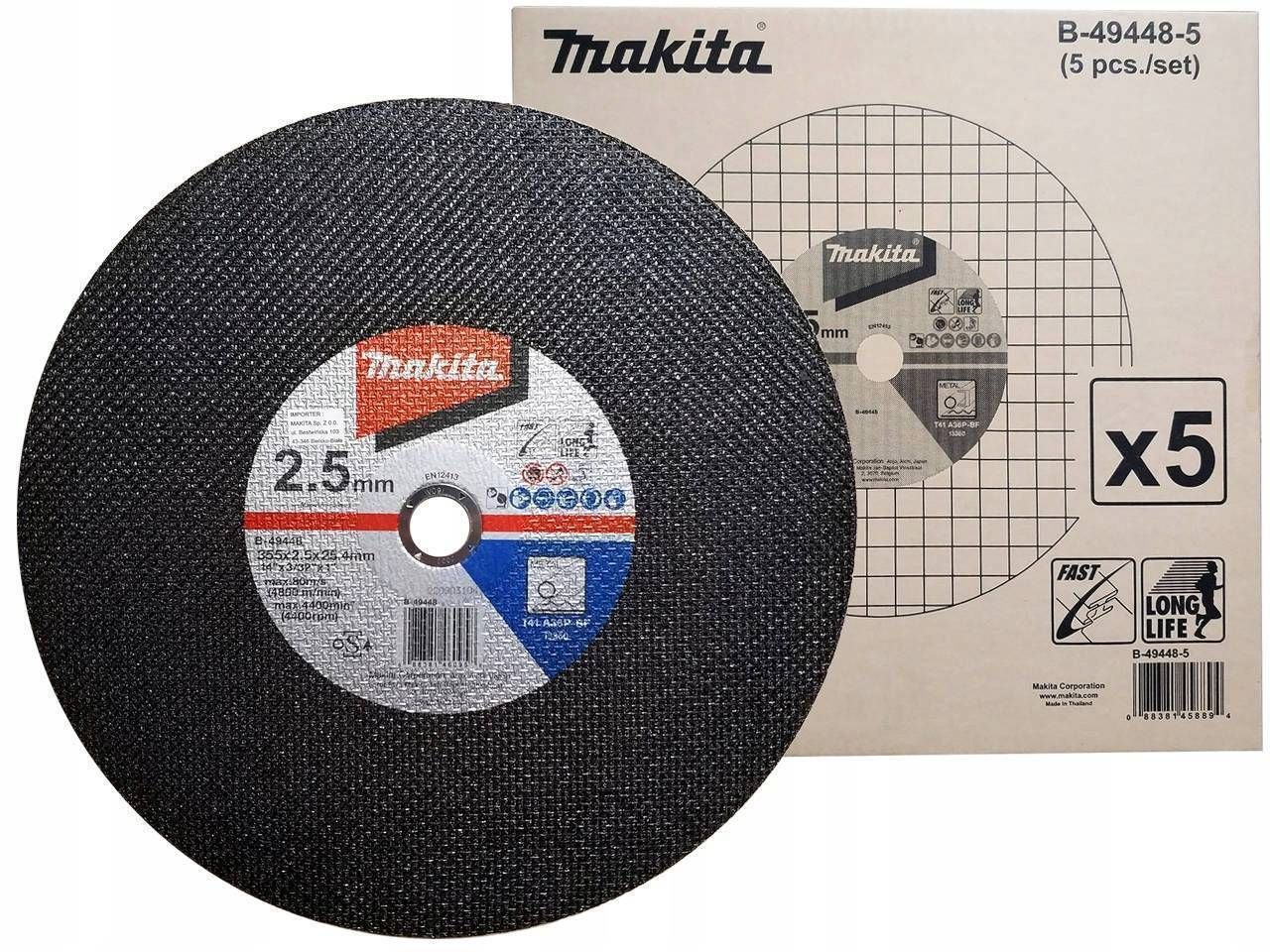 Makita lõikeketas metallile 355 x 25,4 x 2,5 mm. Pakendis 5 tk. Sobib toodetele M2401, 2414NB, LW1400.