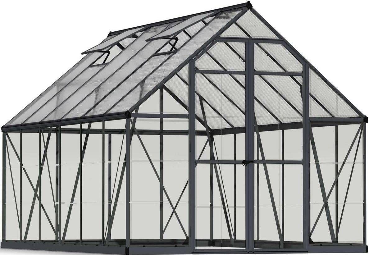Viilkatusega kasvuhoone Balance 8,9 m² on kergesti paigaldatav ja sisaldab galvaniseeritud terasest alusraami. Kasvuhoonel on hingedega topeltuks, sisseehitatud vihmaveerennid, katuseaken ja muud lisafunktsioonid aitavad suurendada kasvuhoone kasutusmugavust. Katusepaneelid on kahe kihilised 4 mm polükarbonaadist, mis kaitsevad taimi tugeva päikesevalguse eest. Seinapaneelid on kristalselt läbipaistvad polükarbonaatplaadid, mis tagavad üle 90% valguse kokkupuute. Täielik UV-blokeering ja 100% UV kaitse. Paneelid on värvitud ja purunemiskindlad ning tagavad vastupidavuse äärmuslikes ilmastikutingimustes pika aja jooksul. Alumiiniumraam garanteerib vastupidava, korrosioonikindla ja jäiga struktuuri. Kannatab lumekoormust kuni 75 kg/m². Kasvuhoone mõõtmed on 244 × 367 x 229 cm ja ukse mõõt on 114,5 × 194,5 cm. Kasvuhoone on tumehalli värvi.