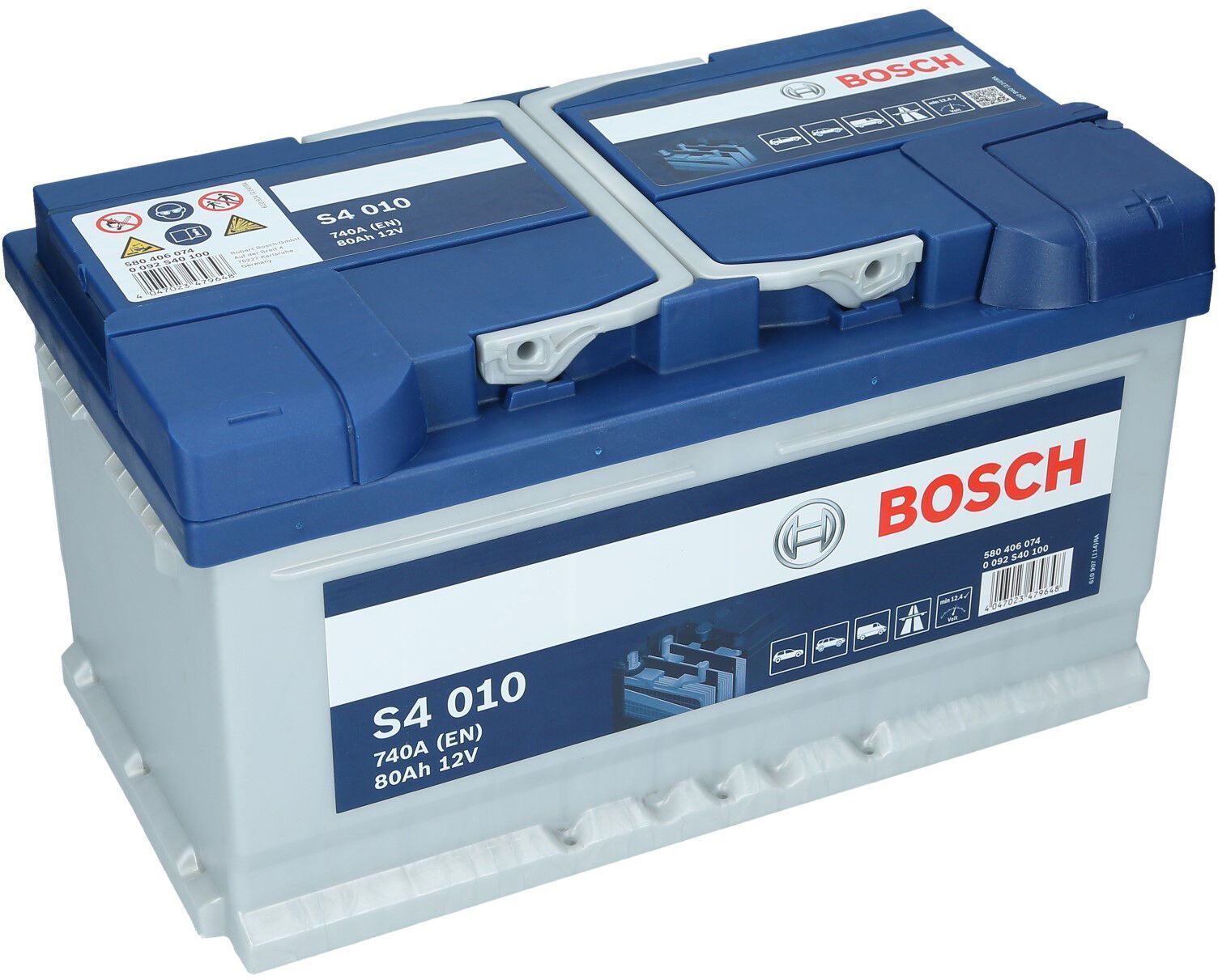 Bosch autoaku S4 010 maht on 80 Ah, stardivoolu võimsus 740 A. Mõõtmed on 31,5 x 17,5 x 17,5 cm.