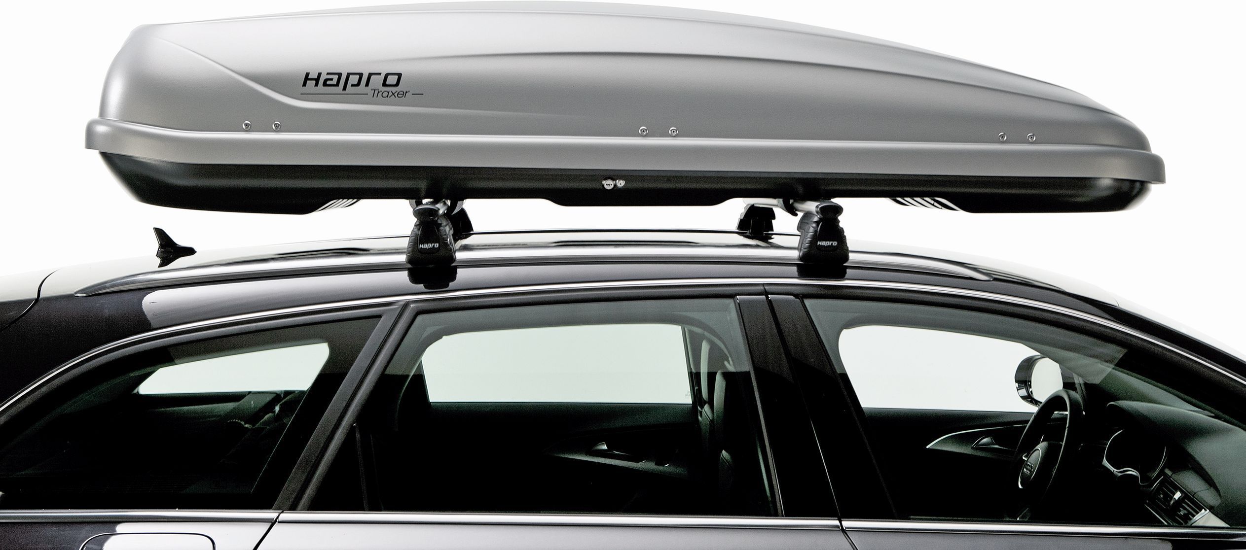 Hapro katuseboks Traxer 8.6 on mõõtmetega 215 x 90 x 43 cm.