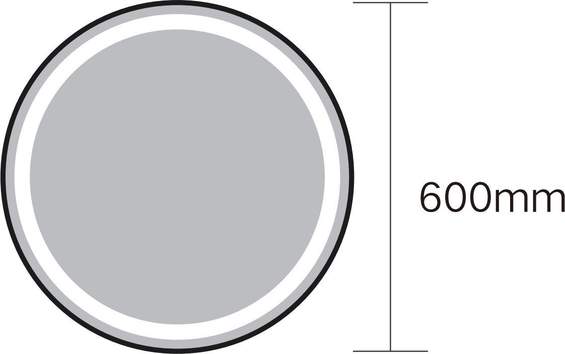 Aqualine ümmargune peegel mustal mettalraamil, koos integreeritud LED-valgustusega, võimsus 12 Wt, luminestsentsi temperatuur 6000 K, IP54. Peeglil on sensorlüliti ja anti-kodens (udu eemaldus) sensorlüliti, toitekaabel on pistikuga. Peegli läbimõõt on 60 cm.