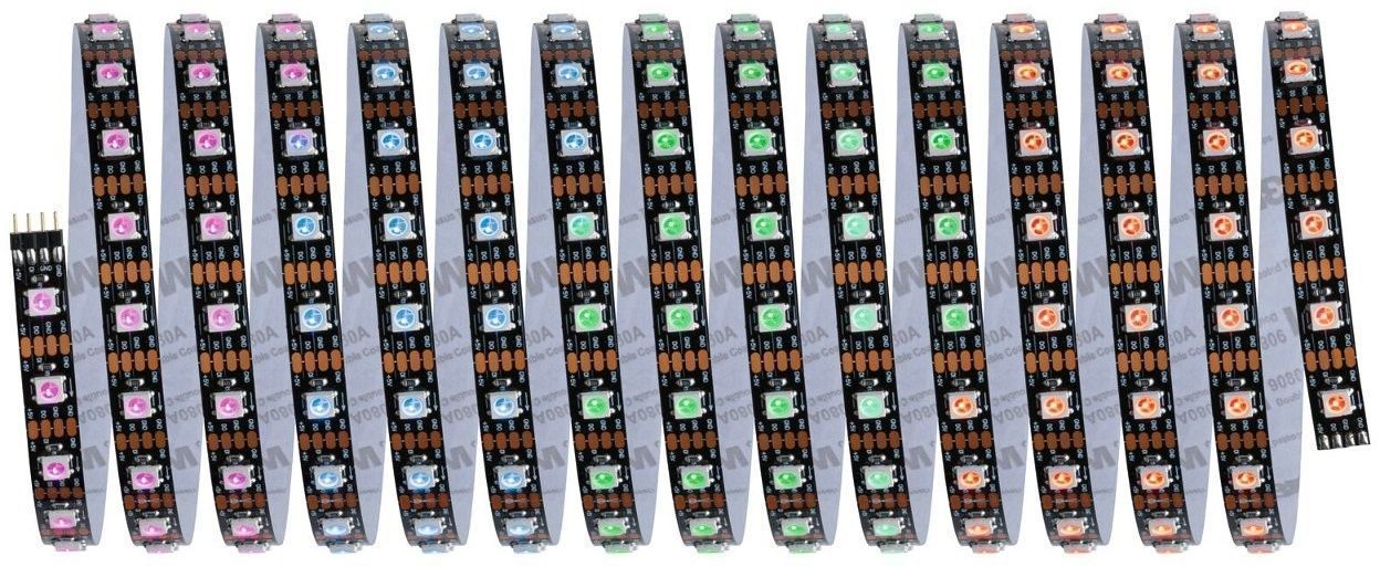 Paulmann LED-ribakomplekt Dynamic Rainbow RGB pikkusega 5 m loob erilise õhkkonna koduses meelelahutuses ja mängualal. Selle meeldiva, vaikselt muutuva dünaamilise värvimänguga saab määrata efektseid valgusaktsente. Mugav juhtimine infrapuna kaugjuhtimispuldiga võimaldab väga lihtsalt seadistada lugematuid värvigradiente ja kiirusi. Väga väikeseid komponente saab ilma tööriistadeta ühendada ja käivitada koheselt kaasasoleva toiteallikaga. Mälufunktsioon salvestab viimati kasutatud seadistuse kuni järgmise sisselülitamiseni. Komplekt sisaldab riba, toiteallikat ja kaugjuhtimispulti. Riba saab lühendada tähistatud kohtades.