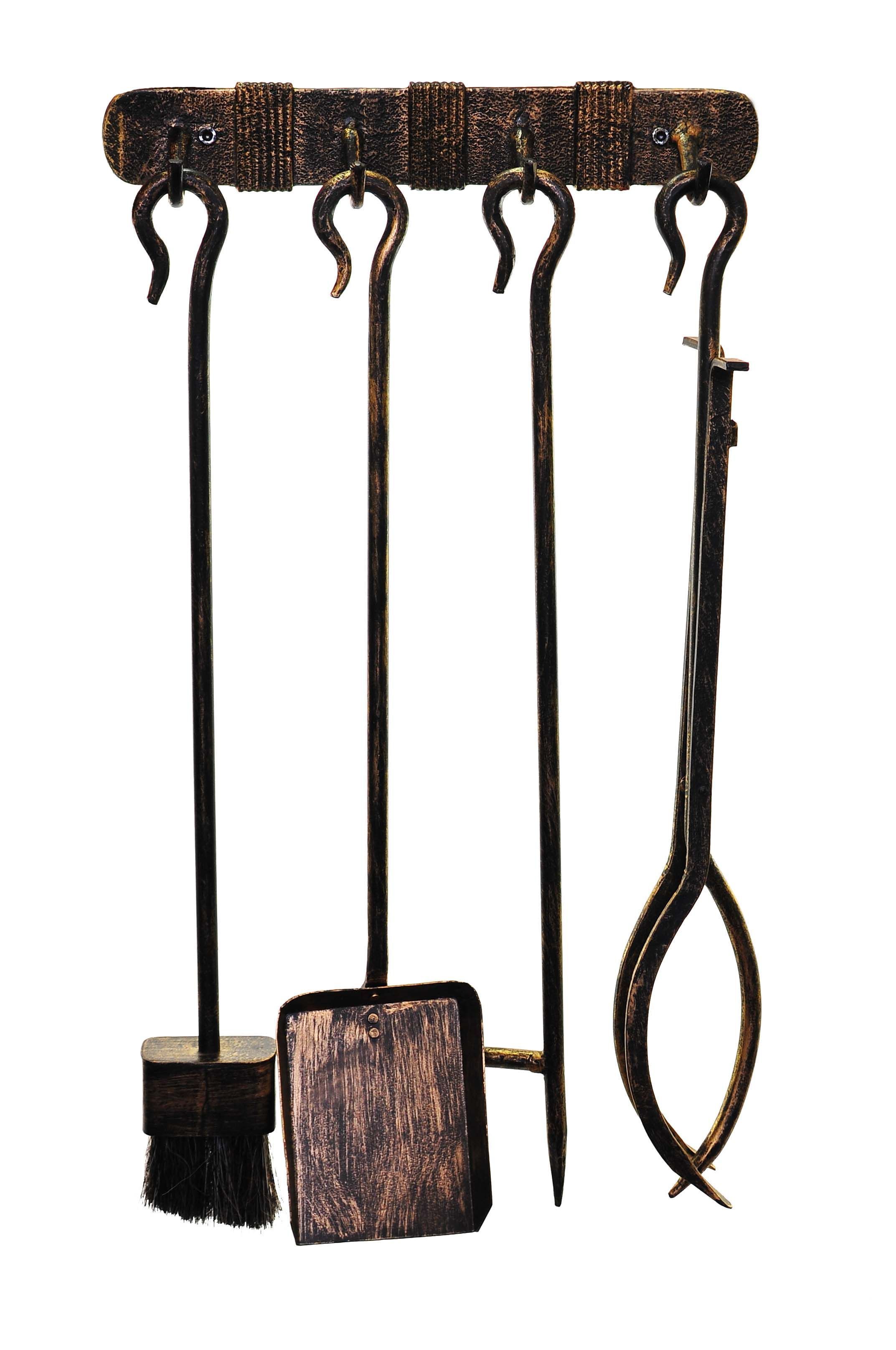 Hansa 4-osaline kaminatarvikute komplekt. Komplekti kuulub: hari, labidas, tangid, roop ja 4 tihvtiga seinaklamber.