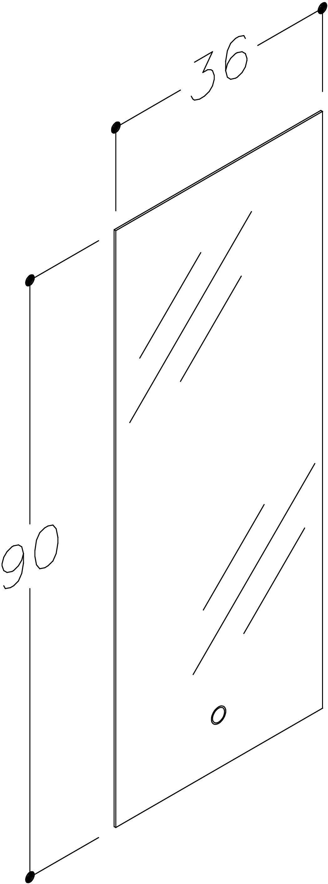 KAMĖ peegel LED valgustusega on mõõtmetega 2 x 36 x 90 cm.