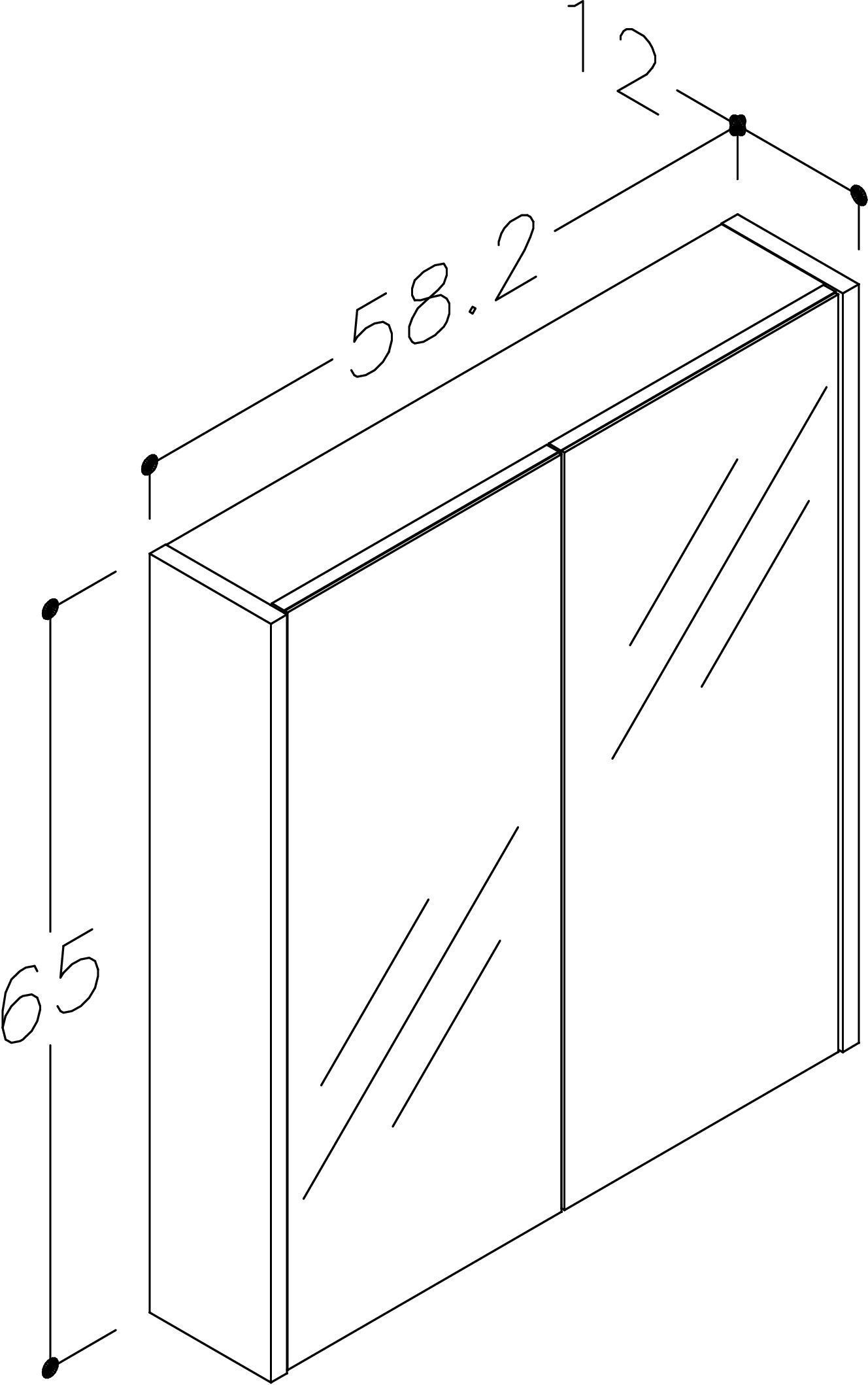 RB Bathroom Serena 60 peegelkapp on mõõtmetega 12 x 58,2 x 65 cm. Kapp on matt halli värvi.
