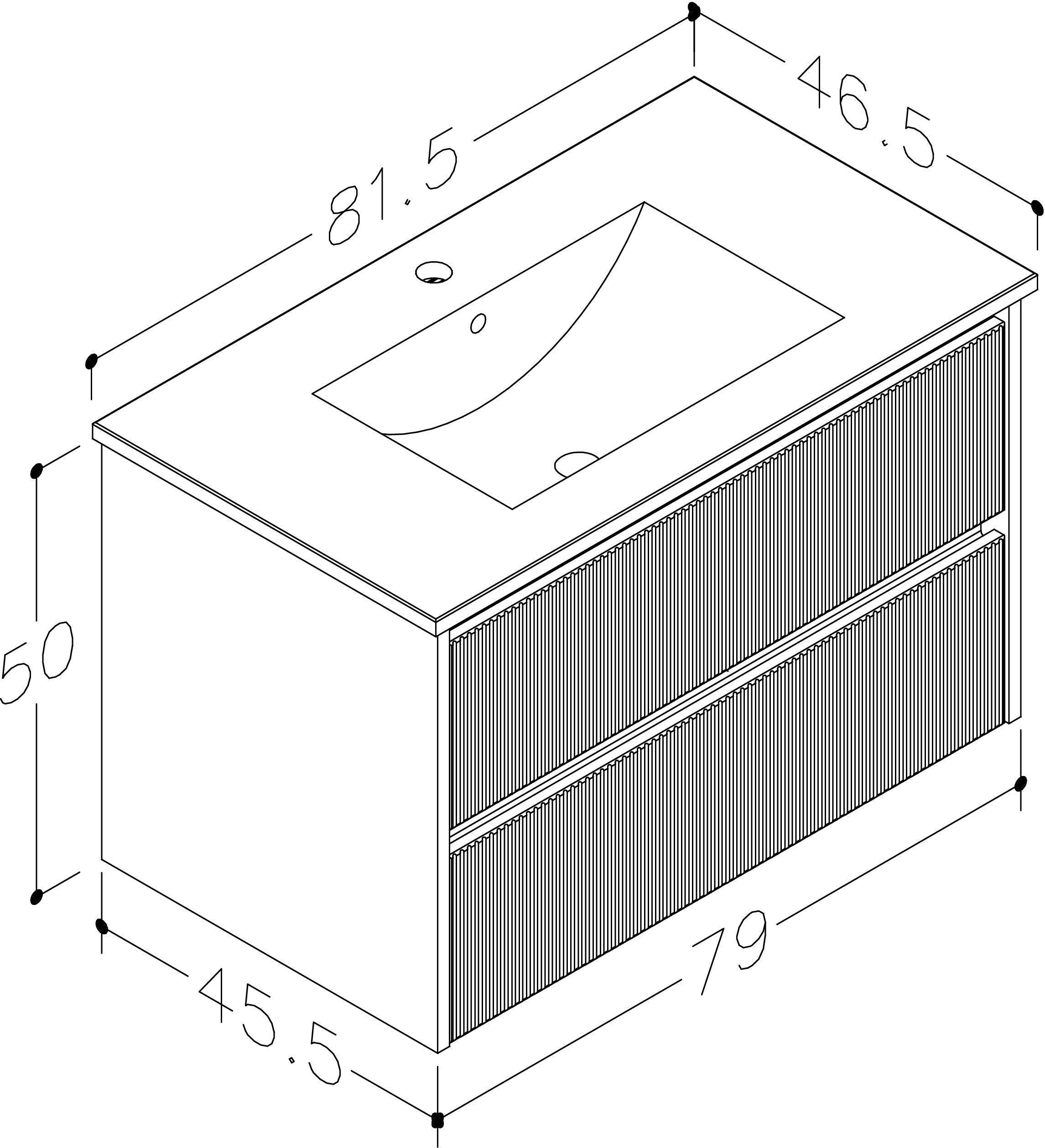 RB Bathroom Urban 80 valamukapp koos valamuga on mõõtmetega 45,5 x 79 x 50 cm. Kapp on hall kašmiir värvi.